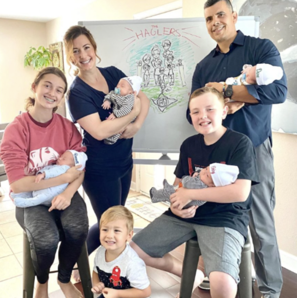 A Texas couple expecting to have their fourth and final child this summer instead welcomed four new babies into their family. Even though the Haglers had only planned to have one more baby, they agree that the quadruplets have transformed their lives for the better. Gaby Hagler, 39, and Patrick Hagler, 50, found out at their 12-week ultrasound that they were expecting not one but four babies. The couple said they were in ‘complete shock’ at the news but after previously experiencing a ᴍɪsᴄᴀʀʀɪᴀɢᴇ, they were excited to meet their rainbow babies.