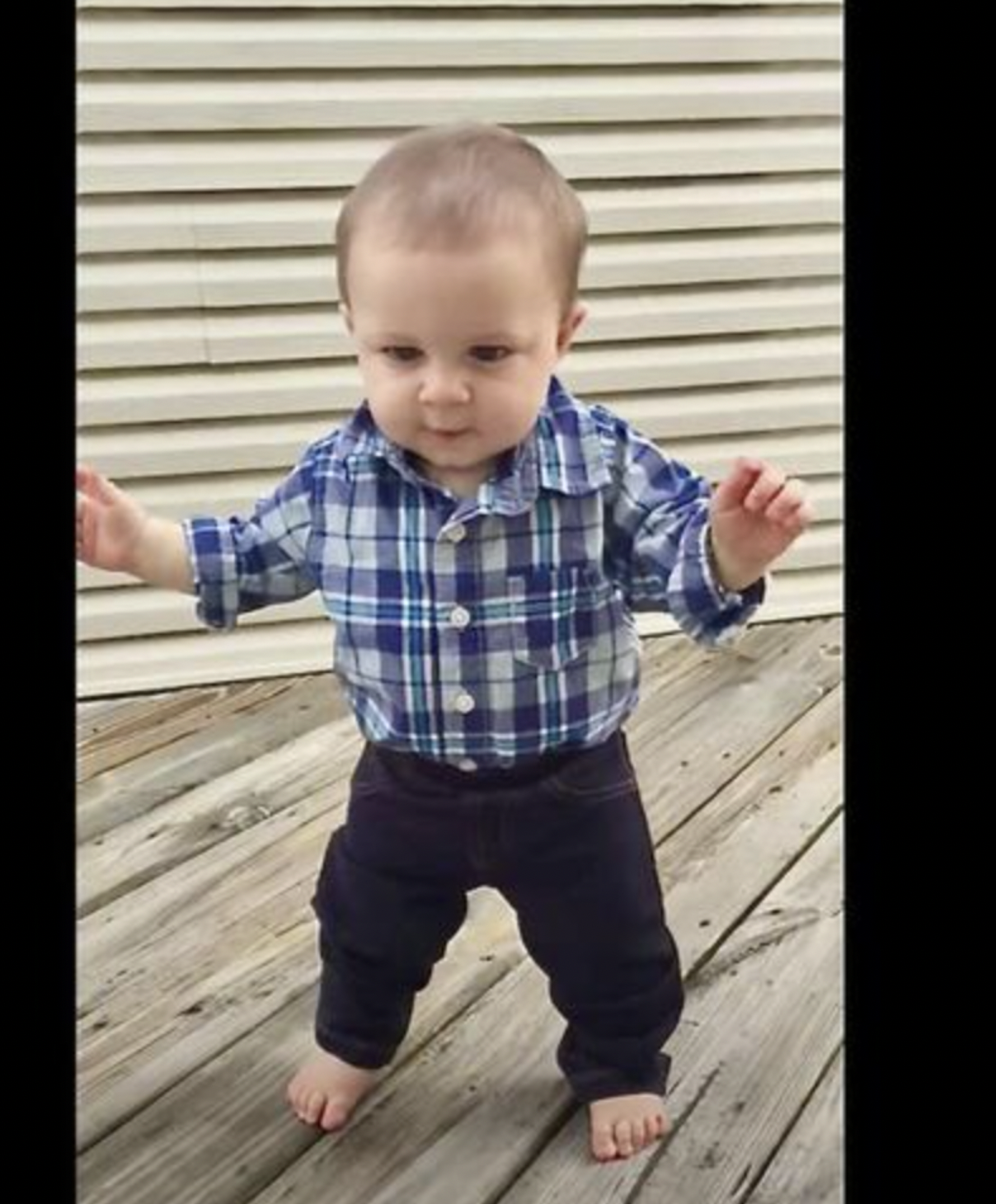 Dressed in an adorable button-down shirt that is tucked into his pants, he seems to know perfectly well what he is doing. Most toddlers need support during their first steps, but not this little man. He walks effortlessly without the assistance of his parents or any support.