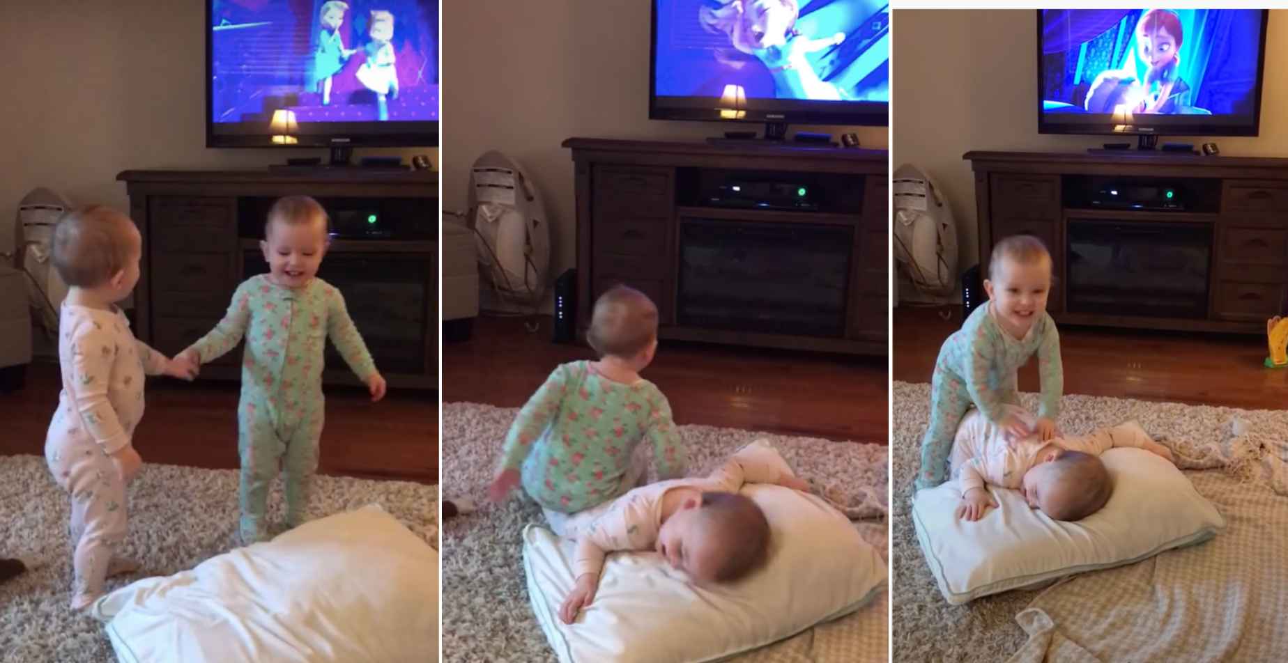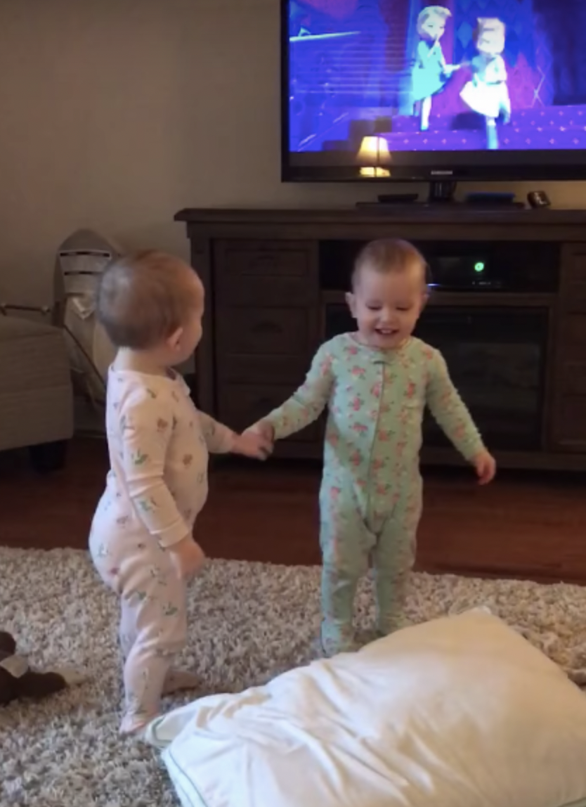 Back in 2017, their mother turned on «Frozen» to keep the twins entertained. Mom stepped out of the room for a moment and heard some rustling in the living room in front of the TV. When she returned, she found something far more amusing than two small children quietly watching a movie.
