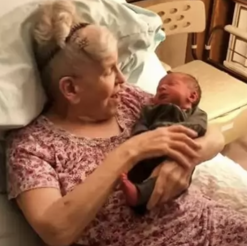 The feeling of holding a newborn baby is pretty incomparable. To add to that, this woman is holding her grandchild’s child. She might not have ever thought she would experience this. She sums her rush of emotions up in the sweetest way saying:
