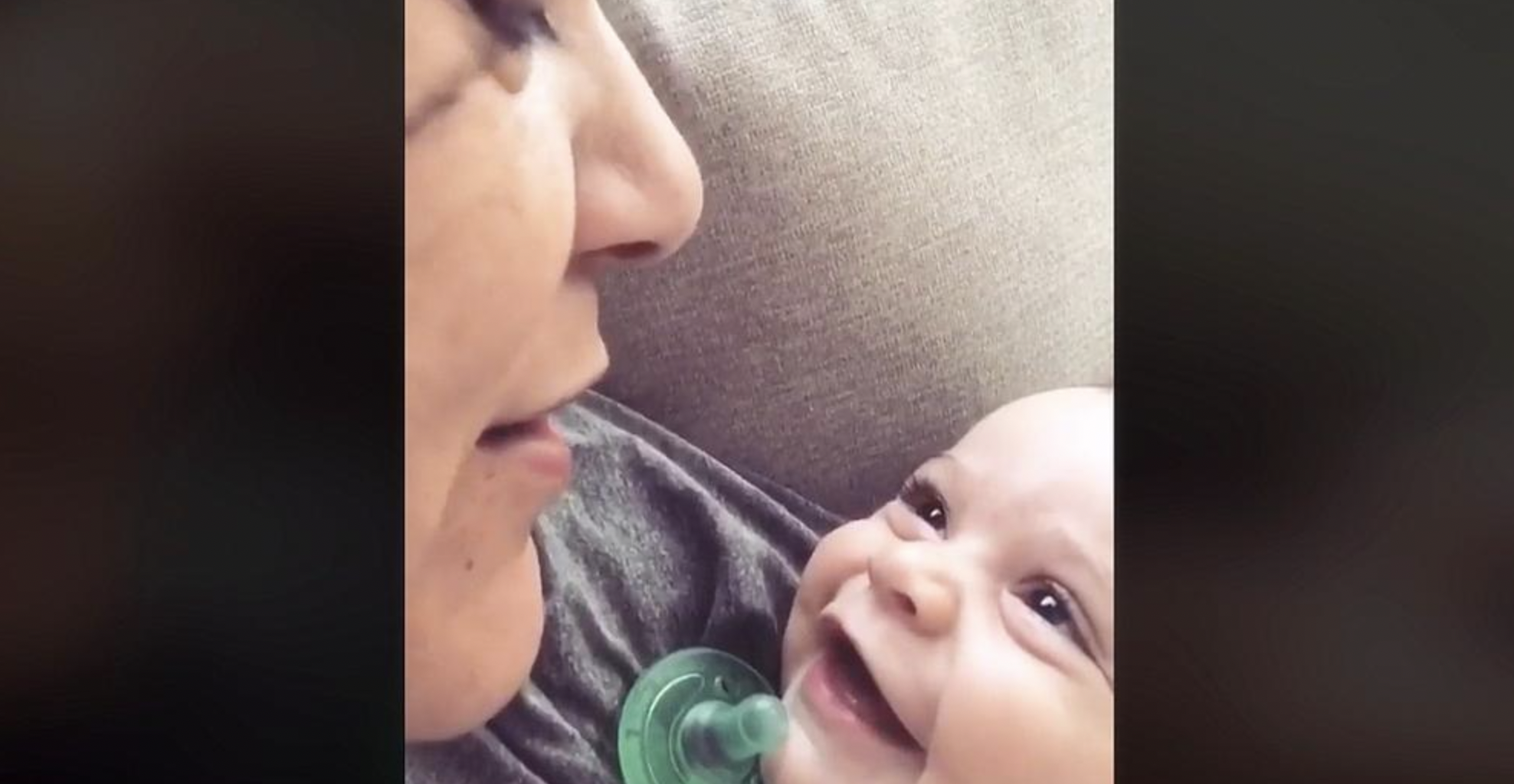 A video that’s circulating the internet features a mom enjoying one of these special moments with her infant son. While holding him in her arms, she sings him a song about Jesus and gets the most precious reaction. Get ready for your heart to melt.