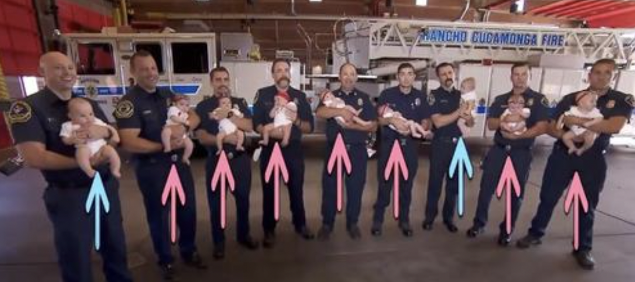 The Rancho Cucamonga Fire Protection District (RCFPD) firefighters had nine babies born between March and July of 2019, two boys and seven girls. The celebratory photo shoot that followed produced some of the cutest pictures ever, such as the beaming fathers holding their babies aloft in a row, and the babies surrounded by firefighting gear — hoses, helmets, boots and so forth — spelling “RCFPD.”