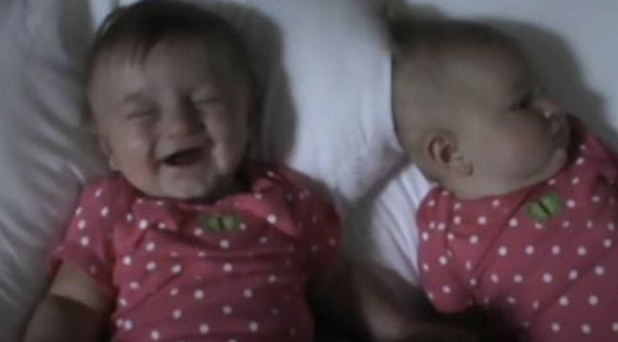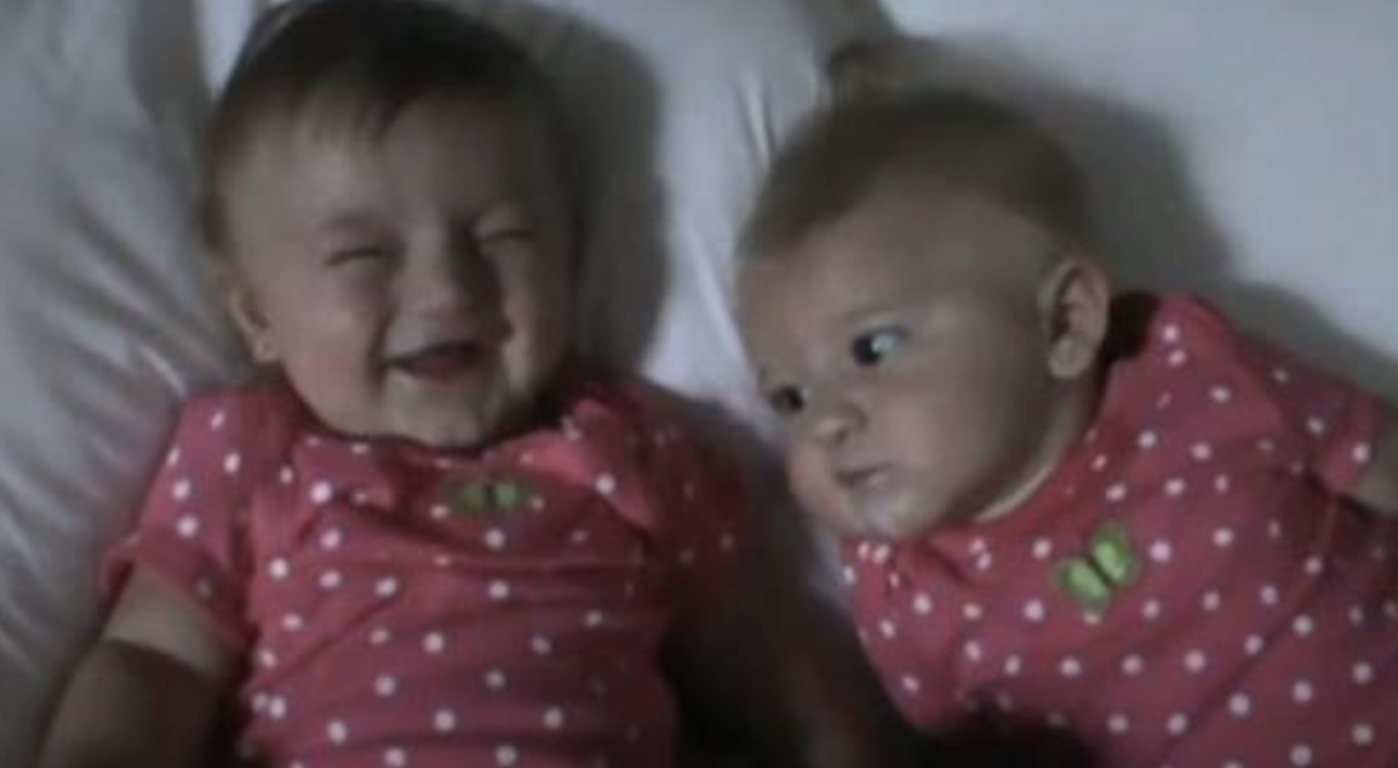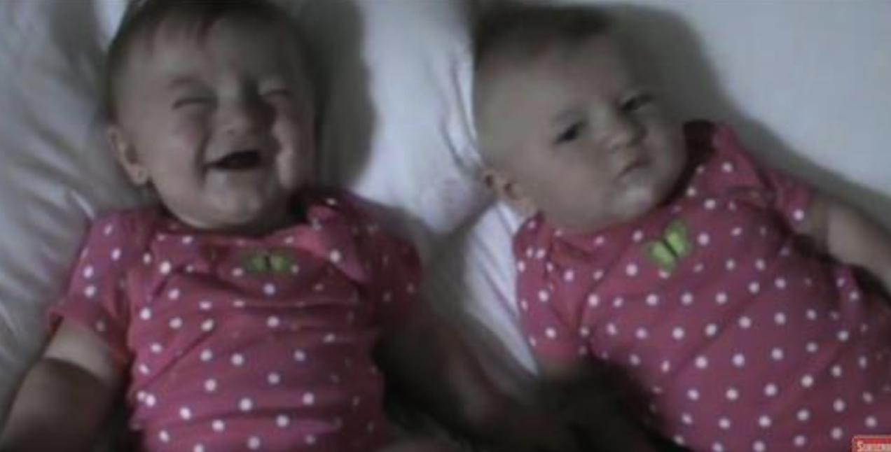 This is at least partly apparent in the video below. This youngster on the left seems to laugh completely unprovoked, apart from the noises her twin sister makes. But using Addyman’s understanding of humor, one could argue that the baby is laughing not because of the noise itself, but because she realizes that her twin sister is responsible for this noise. In this way, the laughter is social; it’s a way to bond with her sister, another being that she’s just come to recognize.