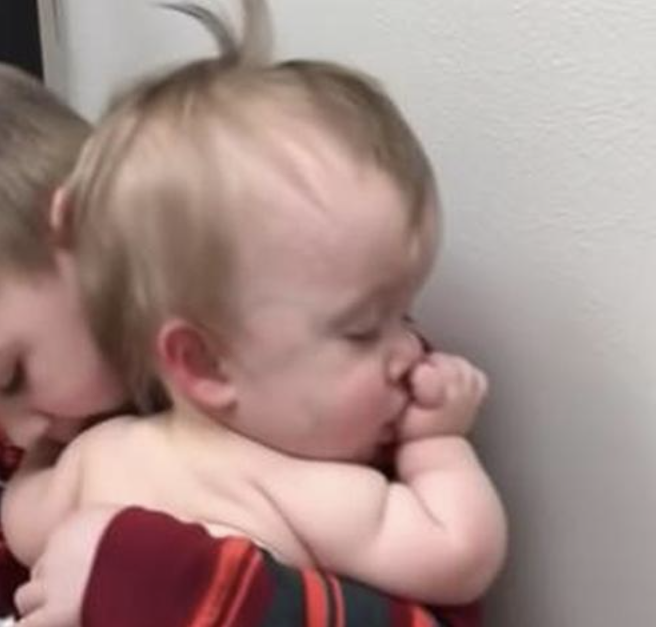 In a video posted to Instagram, a small boy is seen cradling his baby sister and rocking her from side to side. His arms are properly supporting her weight, and he shows nothing but patience and tenderness as the little girl sucks her thumb with her eyes closed.