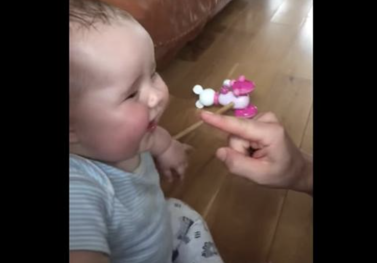 Even though all ears were on the laughter of the baby, the father couldn’t contain his own laughter at the situation. There’s no way you can watch this video without letting out a little giggle yourself.