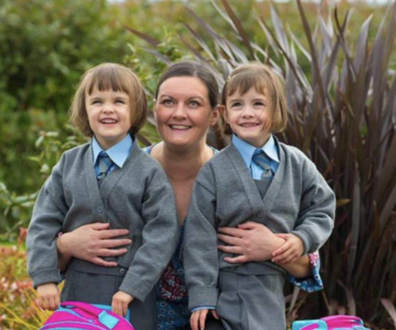 The girls’ names are written on their schoolbags to make it easier for classmates and teachers to tell them apart. But parents can easily find many differences among their daughters, who were born with a difference of 87 days.