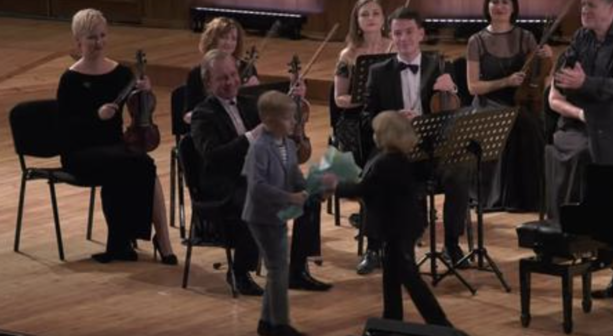 Even though he is very young, Elisey is a master pianist. As his hands guide his fingers, they glide along the keyboard with grace and style. Soon, the sound of the piano overpowers the sound of the violins.