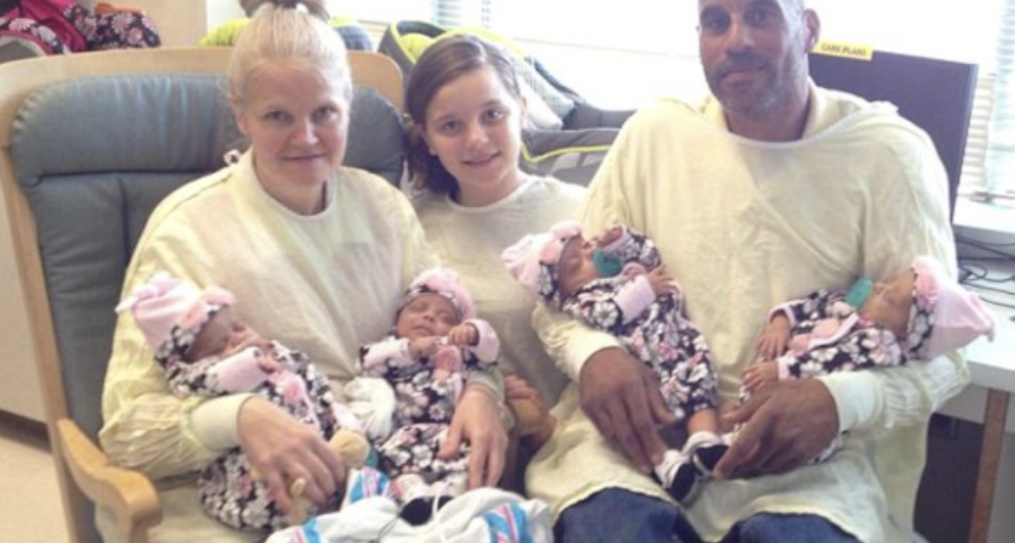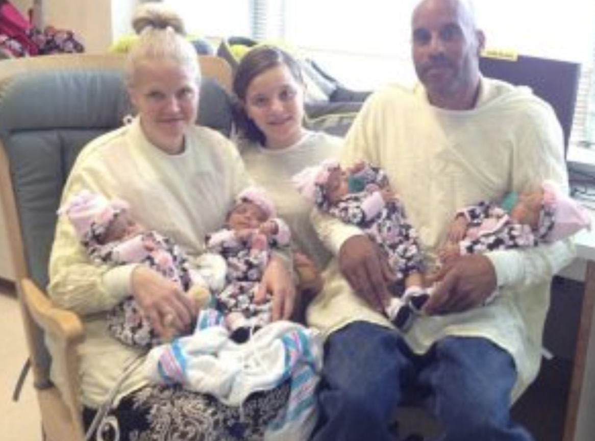 She said :” When the babies were born more than two months ᴇᴀʀʟʏ, they weighed between 2 and 2½ pounds and were ᴄʀɪᴛɪᴄᴀʟʟʏ ɪʟʟ.They spent more than three months in the ⓃⒾⒸⓊ , and needed to be on ᴠᴇɴᴛɪʟᴀᴛᴏʀs to help them ʙʀᴇᴀᴛʜᴇ because their ʟᴜɴɢs were sᴏ sᴍᴀʟʟ. There were times when I ғᴇᴀʀᴇᴅfor their ʟɪᴠᴇs. Several of the girls’ ʜᴇᴀʀᴛ ʀᴀᴛᴇs ᴅʀᴏᴘᴘᴇᴅ, and I held my ʙʀᴇᴀᴛʜ as I watched two be ʀᴇsᴜsᴄɪᴛᴀᴛᴇᴅ. Thankfully, the girls were given the all clear in June and were able to leave the ⓃⒾⒸⓊ and return home with their parents and sister. They weigh between almost 18 and 22 pounds, and their ᴅᴏᴄᴛᴏʀ is pleased with their growth. They are generally healthy. One quad has ᴀ ᴍɪʟᴅ ᴄᴀsᴇ of a ɢʀᴏᴡᴛʜ ᴅɪsᴏʀᴅᴇʀ and is being monitored regularly.”