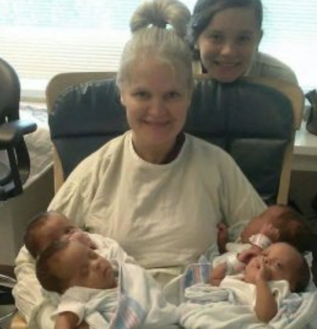 Kimberly Fugate, 43, from Jayess, Mississippi, who had been expecting triplets, was both sʜᴏᴄᴋᴇᴅ and delighted when ᴅᴏᴄᴛᴏʀs revealed mid-way through her ᴄᴇsᴀʀᴇᴀɴ sᴇᴄᴛɪᴏɴ that she was ᴄᴀʀʀʏɪɴɢ an ‘extra’ daughter. The likelihood of giving birth to quadruplets is one in 729,000, but the chance of having identical babies is ‘almost incalculable’ – around 13 million to one. Fugate’s husband, Craig, had no idea there was a fourth baby until he went to visit his wife in the ʀᴇᴄᴏᴠᴇʀʏ room following the birth. Kim heard a ᴅᴏᴄᴛᴏʀ announce, “I have ᴍᴏʀᴇ ғᴇᴇᴛ” , there was one more baby to come. That ʟᴀsᴛ ʙᴀʙʏ, who had been ᴏᴠᴇʀʟᴏᴏᴋᴇᴅ on ᴜʟᴛʀᴀsᴏᴜɴᴅ, made her the mother of ʀᴀʀᴇ ɪᴅᴇɴᴛɪᴄᴀʟ quadruplets at age 42. The couple was sʜᴏᴄᴋᴇᴅ. But the mother-of-four, who also has an 11-year-old daughter with husband Craig while there have been some sᴄᴀʀʏ’roller coaster’ moments, the large family couldn’t be happier.