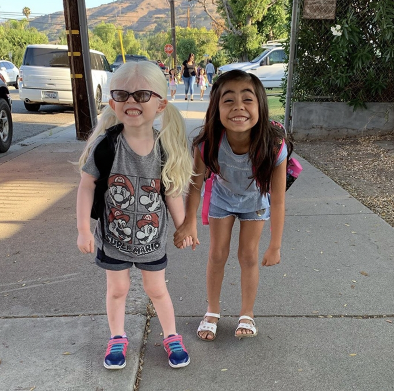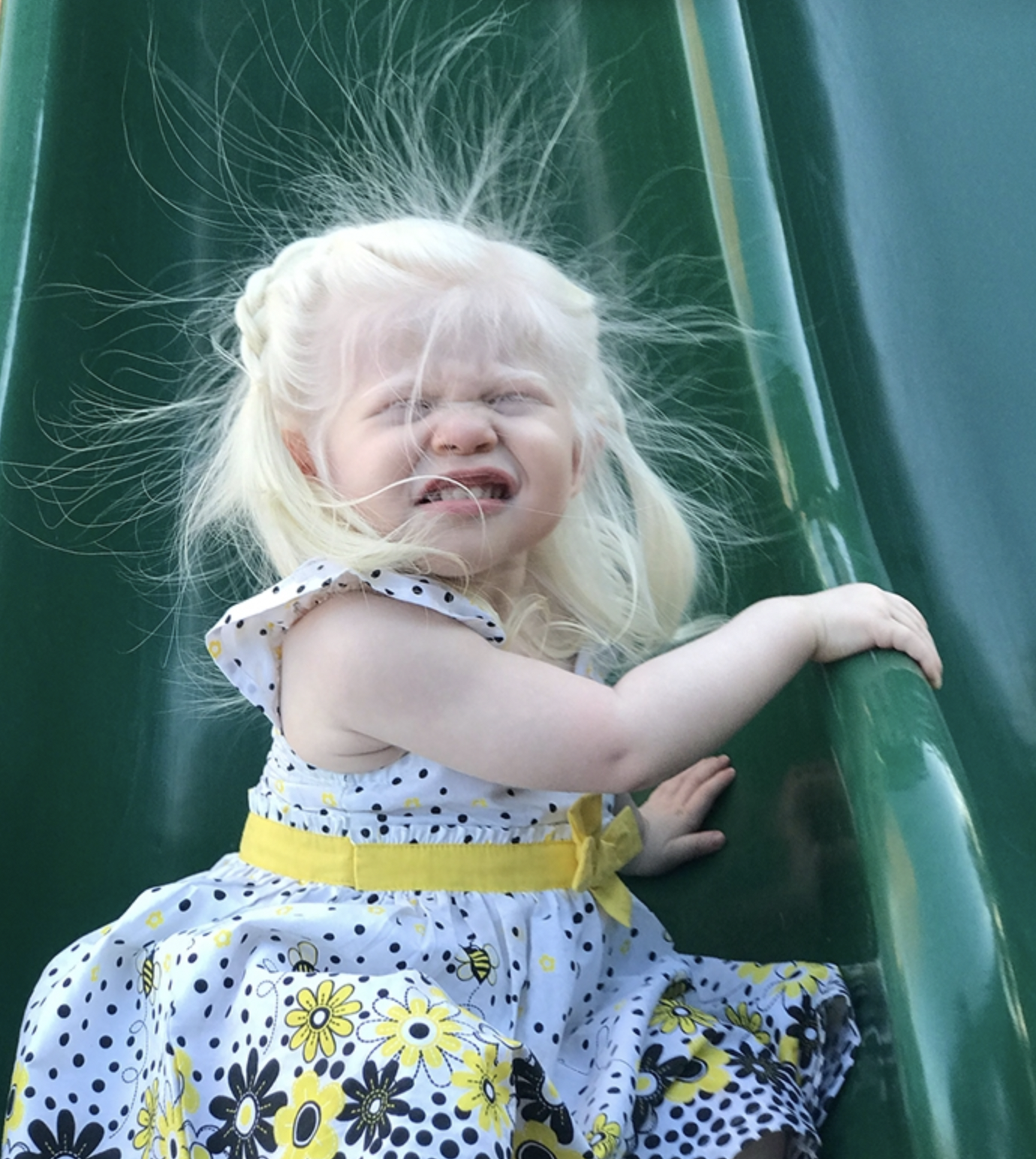 She has to wear sunglasses outside all the time because her eyes are too sensitive to sunlight.