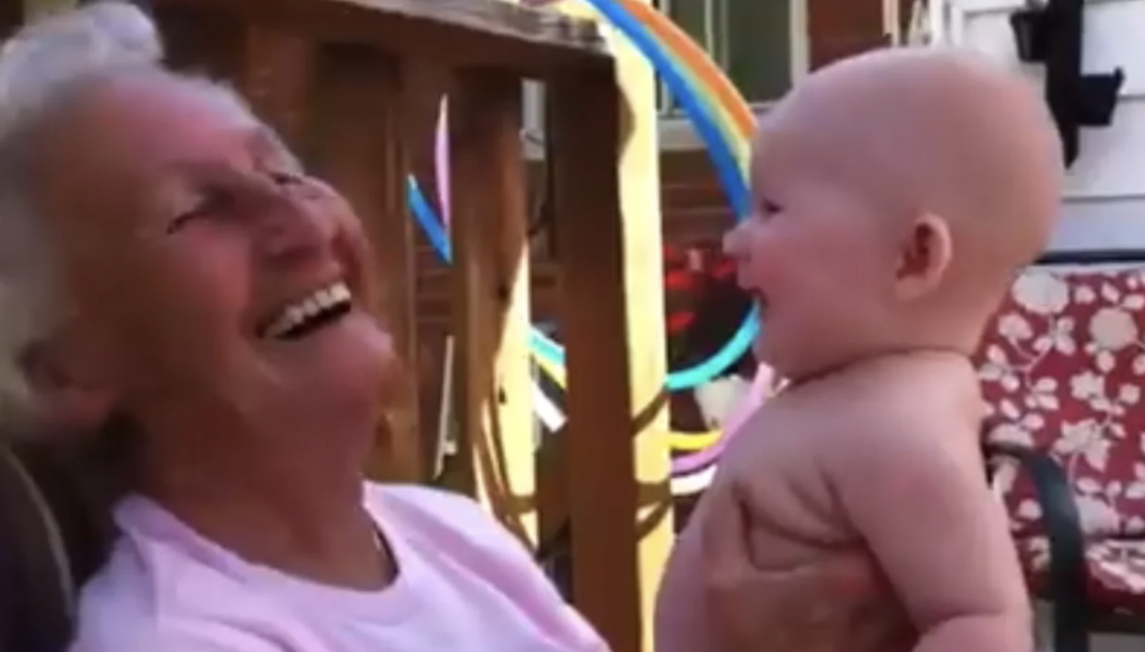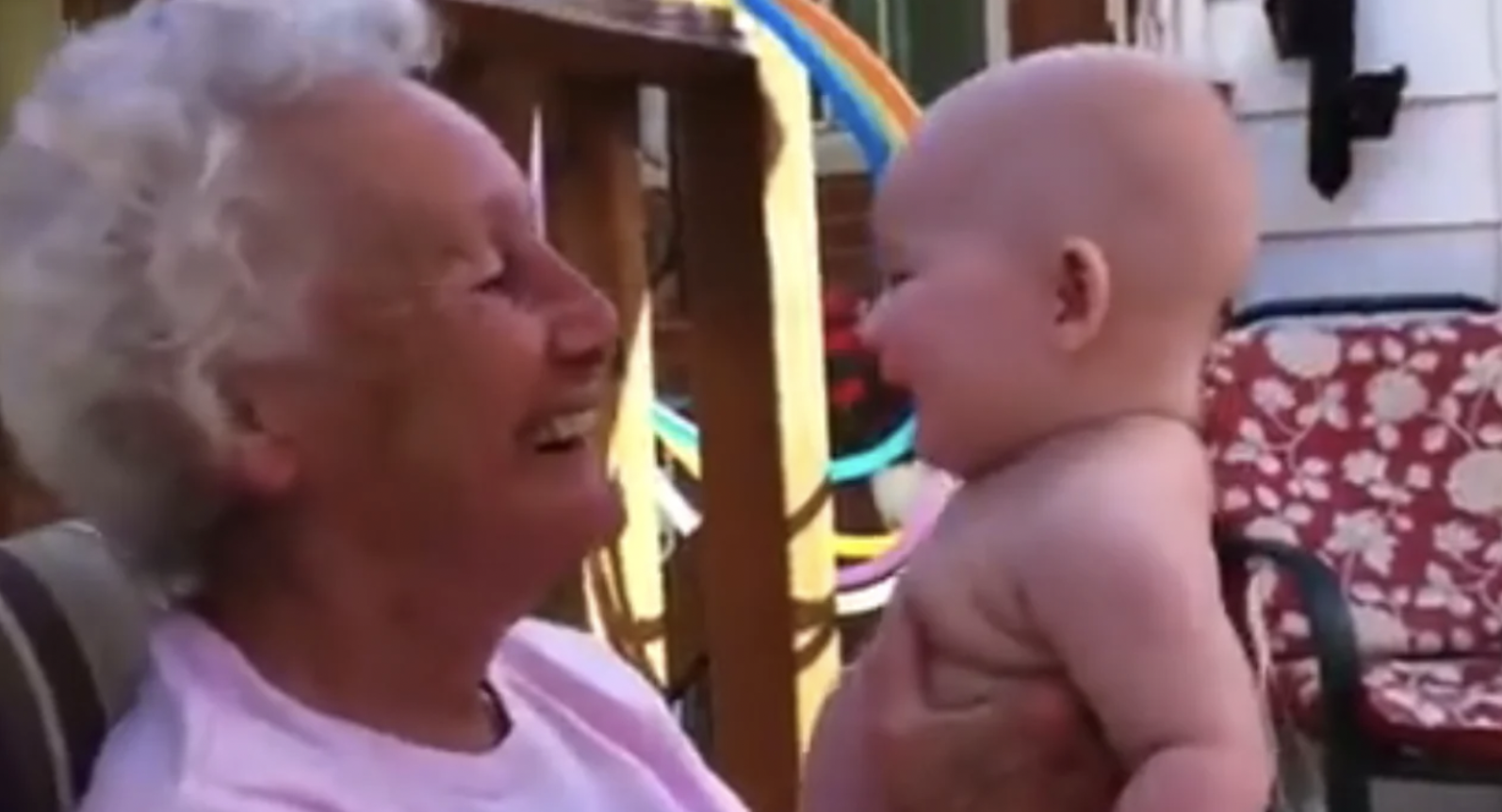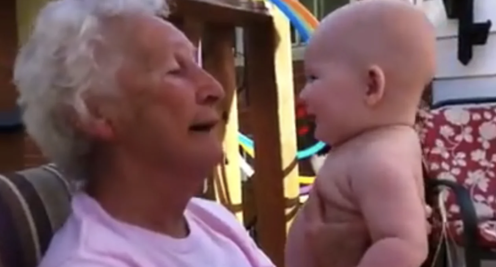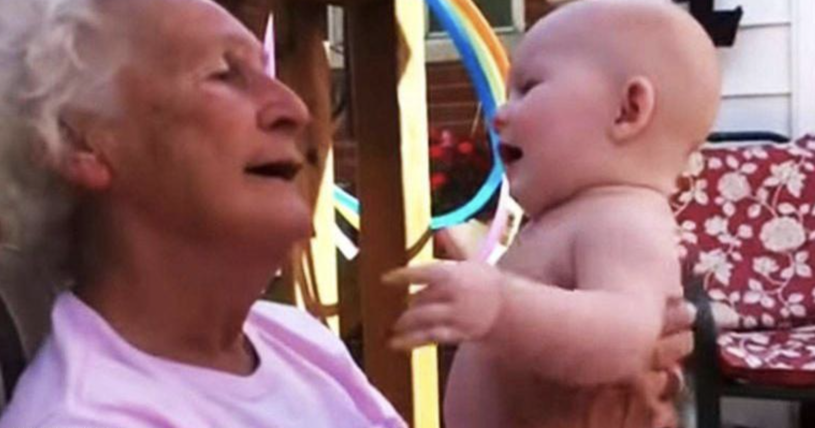 When this baby’s great-grandma hears her great-granddaughter trying to talk to her, she talks right back.