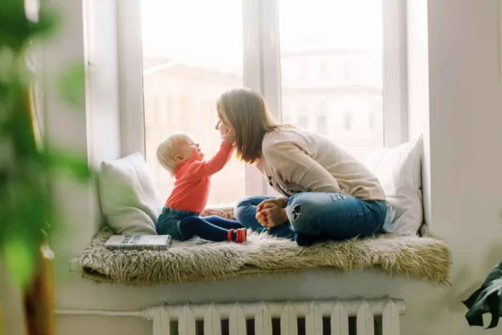 She’s holding the young child in her hands and looking right into her eyes as the baby makes all sorts of cute noises.