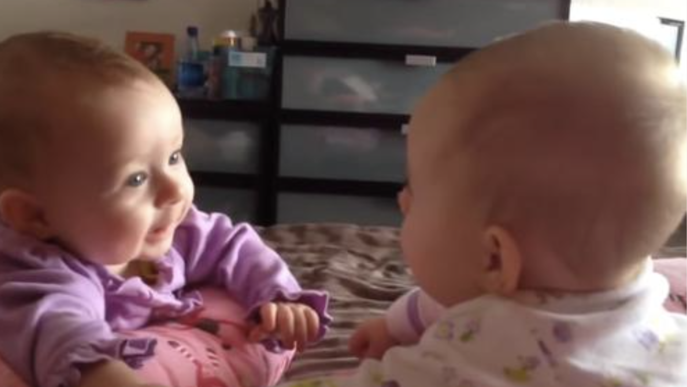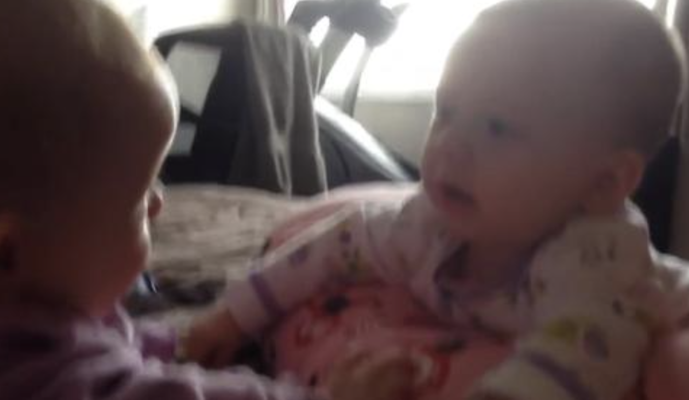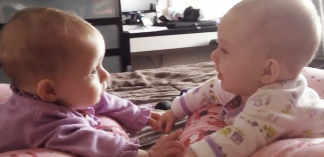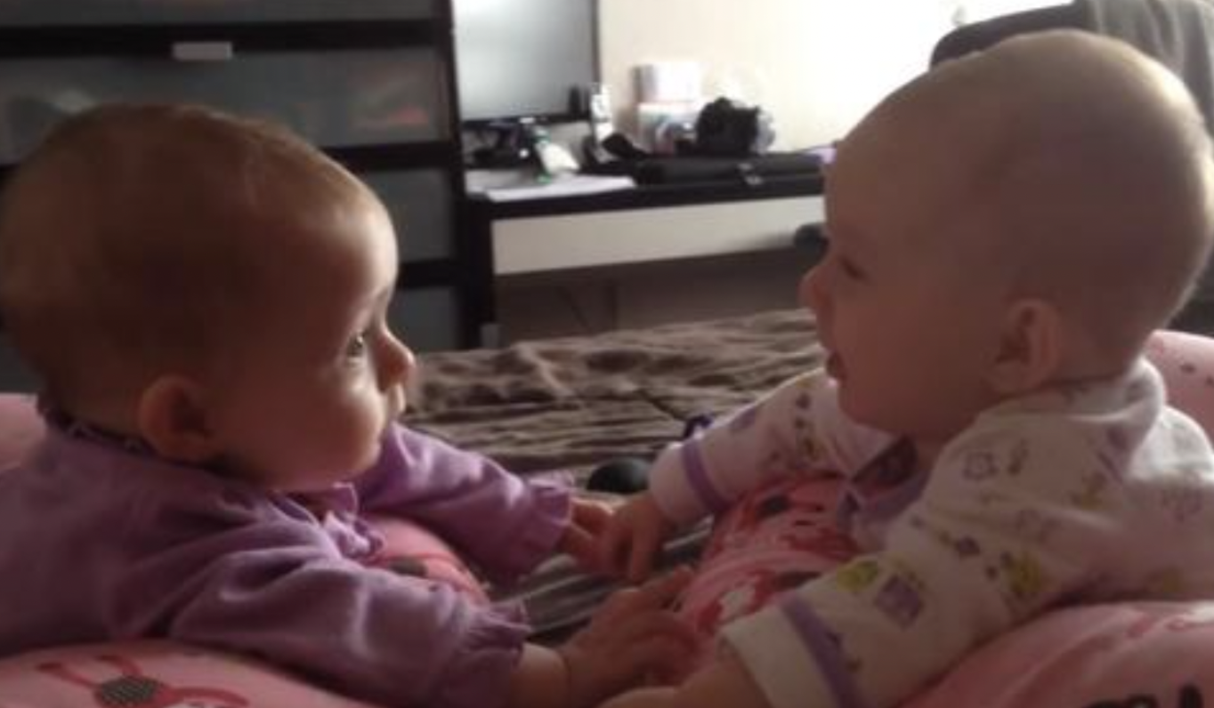 While we, as adults, cannot understand the twins’ baby talk, those who have seen the video have their own theories as to what the two cuties are talking about. One commentator jokes that they are gossiping about the 4-month-old twin boys down the street, while another guesses that they are expressing their displeasure at their new formula.