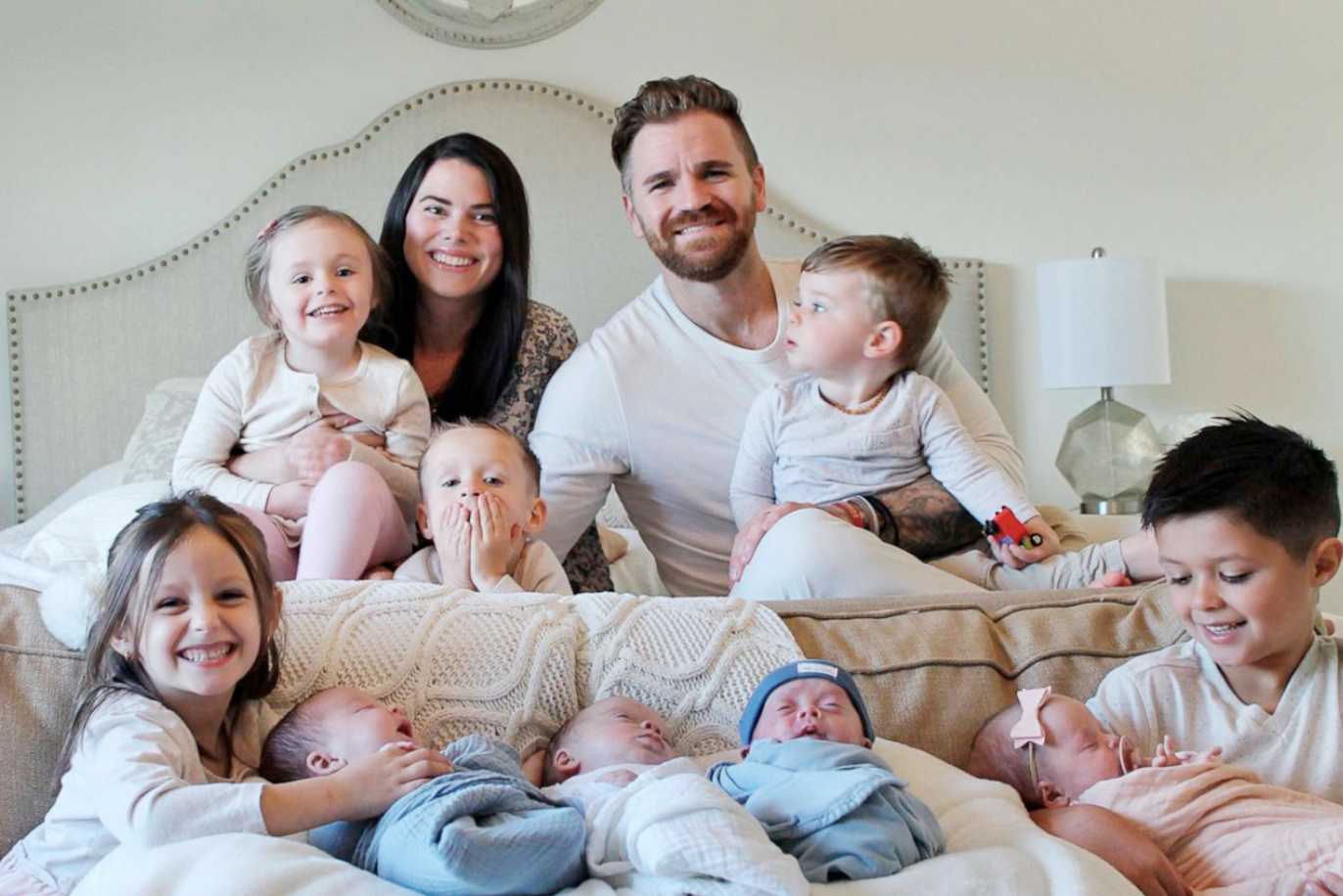 So, our happy large family has nine children: Aidan (8 years old), Parker (5 years old), Connor (4 years old) and Elliot (3 years old), as well as son Henry (2 years old) and three-month-old quadruplets Beck, Silas, Theo and Cecilia.
