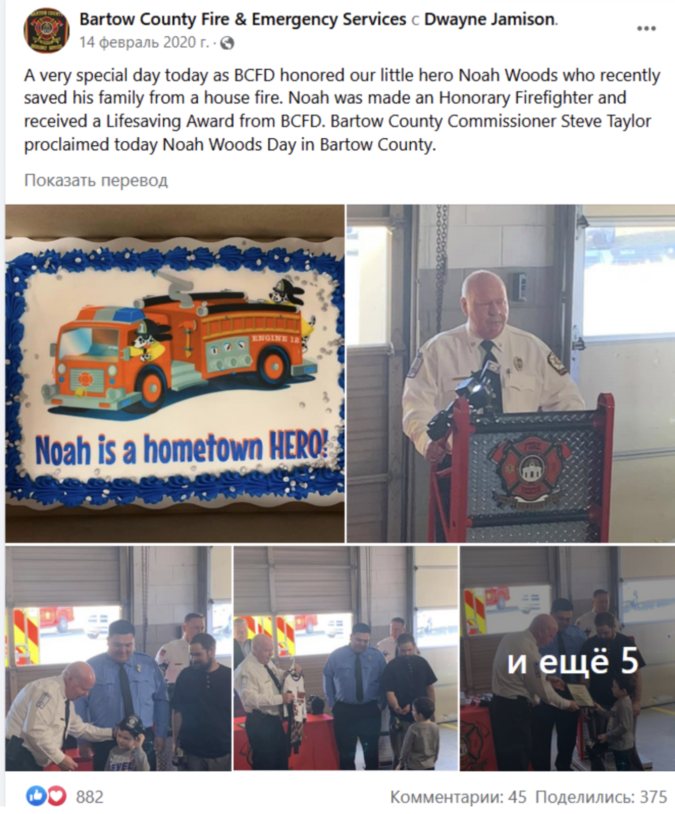 Bartow County Fire Chief Dwayne Jamieson says, “We’ve already seen kids alert their families. But for a five-year-old to be alert enough to do that… it’s very unusual.”It was later determined that the fire had started from an overloaded electrical outlet in Noah’s bedroom. Noah’s grandfather David Woods, who was one of the family members sleeping in the house when the fire broke out, said: “By the grace of God, all our loved ones were able to get out of our house. “If it wasn’t for Noah, we might not be here today.”
