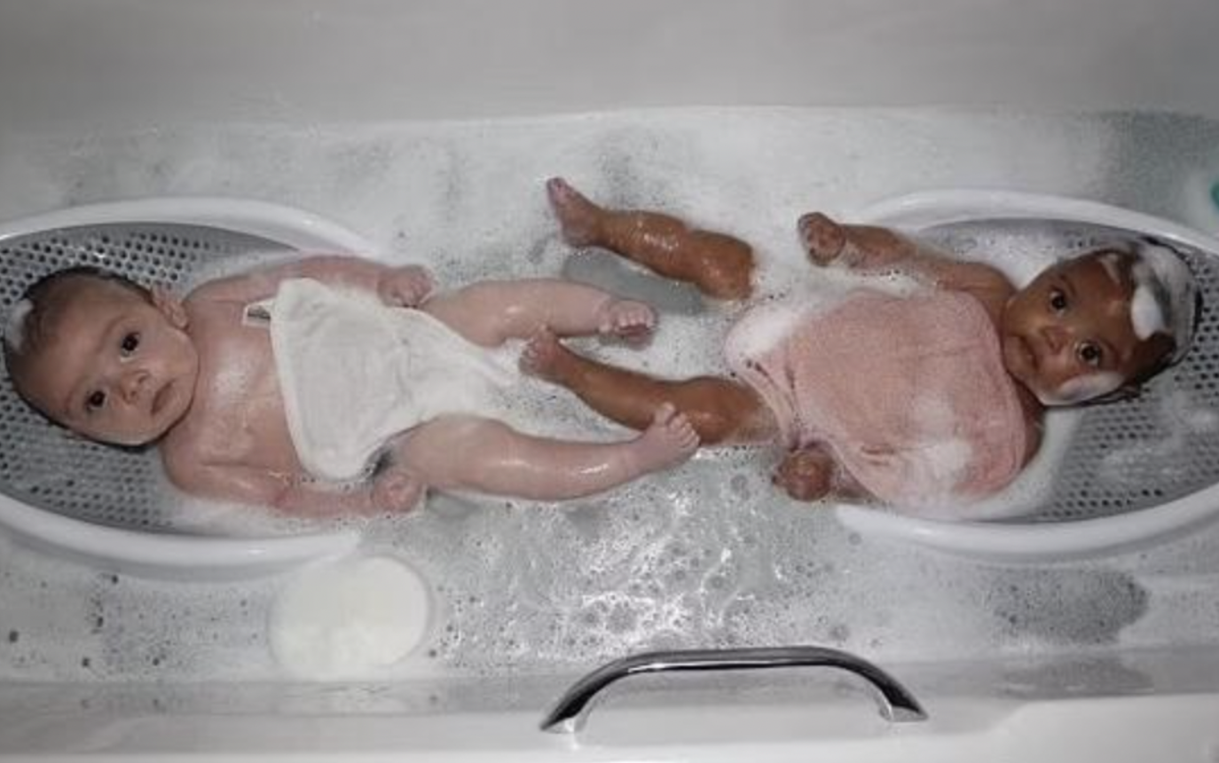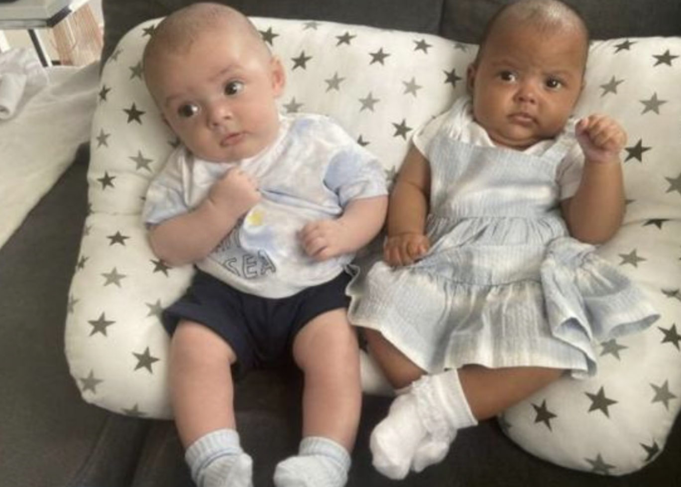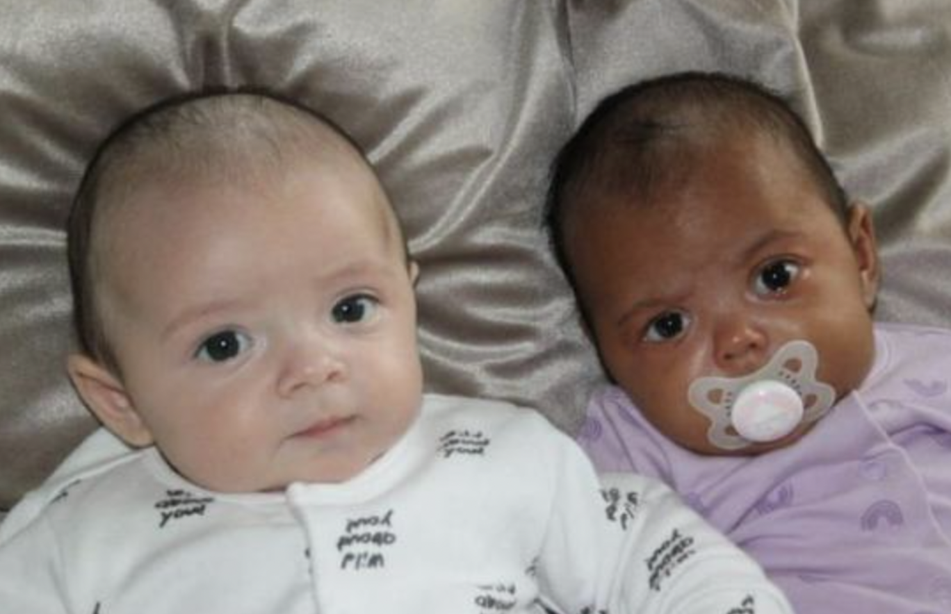 The babies were very similar at birth, but one of them developed a darker skin tone over time.