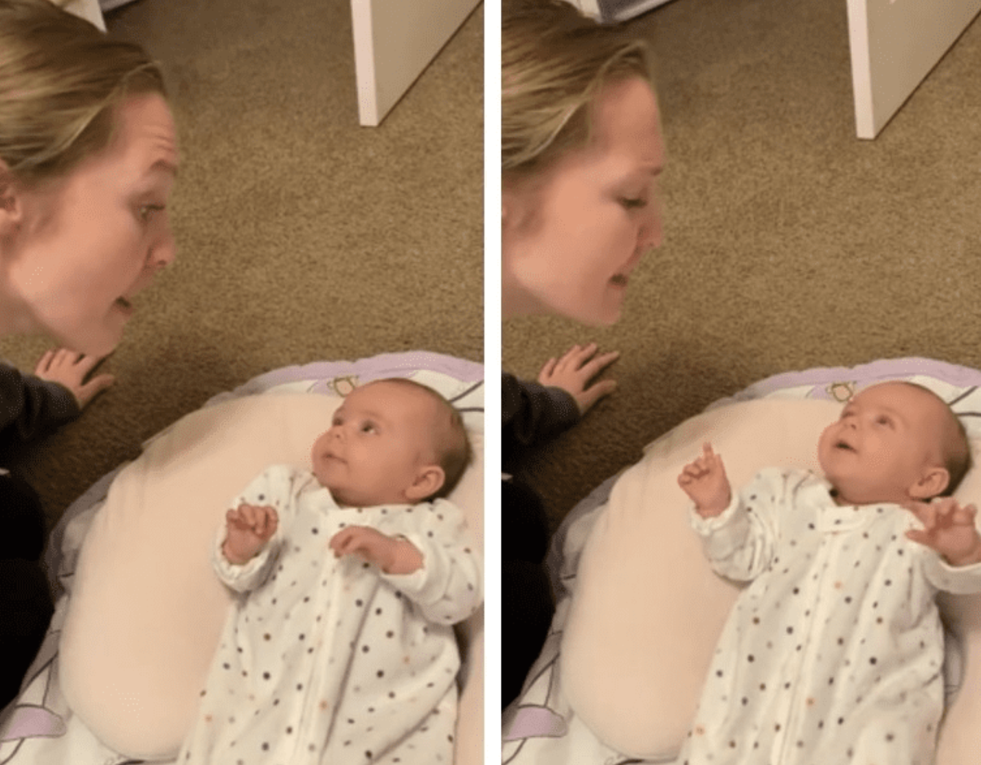 Willow’s mom, Ariana, sings “My Girl” to her precious little girl, and her baby responds with coos and smiles as if complimenting her mom’s voice.