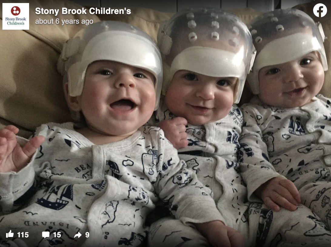 All three of the triplets recently visited David A. Chesler, MD, Ph. D, a pediatric neurosurgeon. Chesler is a leading expert on the condition of craniosynostosis. Following the surgeries, the triplets had to wear specially-designed helmets to protect their sensitive skulls. After wearing these helmets for 23 hours each day for many months, they were finally able to take them off.