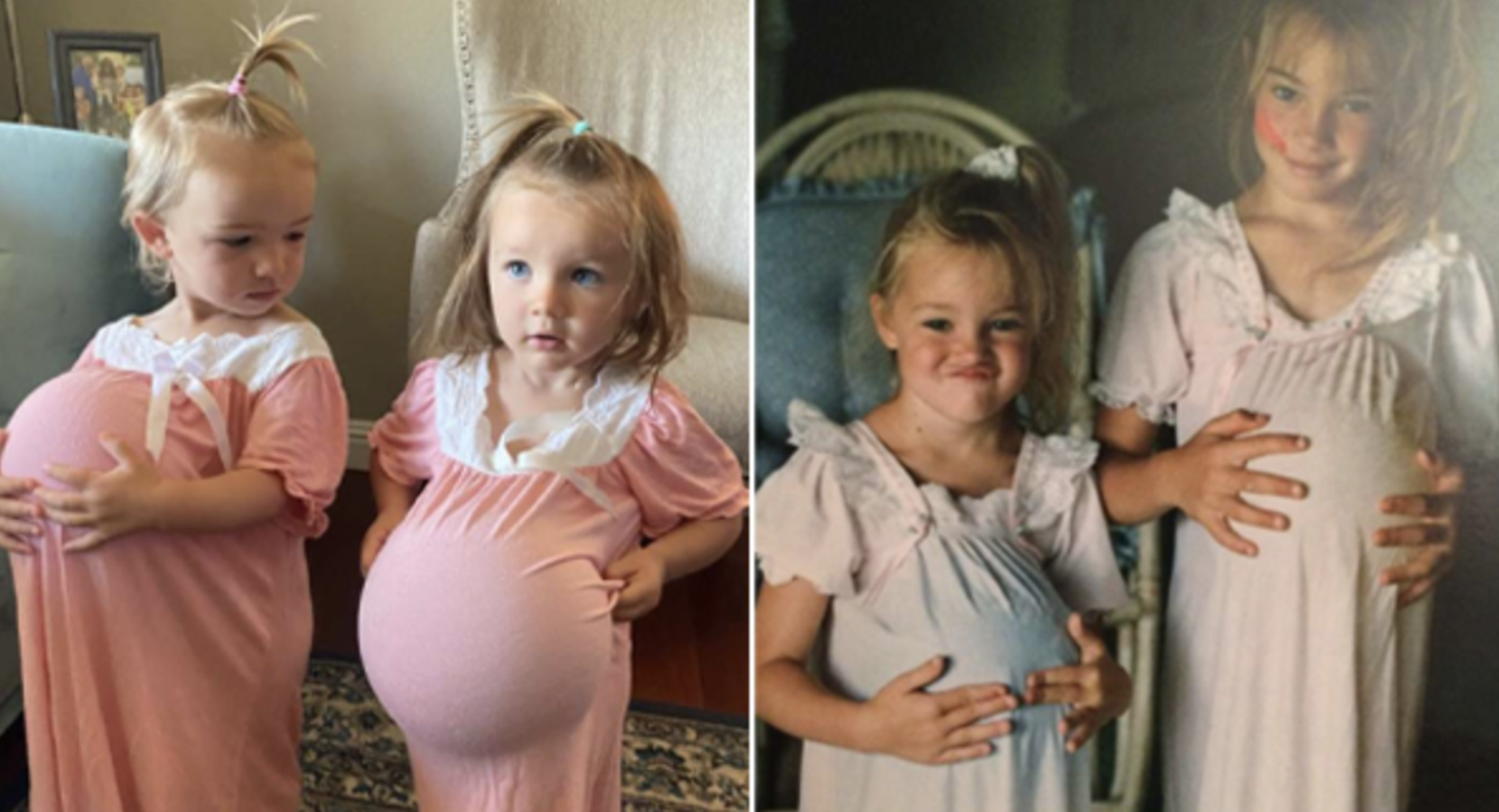 25 years ago, they discovered their photo. The photograph was taken in the 1990s and shows the two wearing nightgowns, curlers in their hair, and balloons below. The sisters later posed side by side in their pajamas once more, this time lifting their shirts to show off their enormous tummies. Barba gave birth to her daughter Gemma in January 2020, while Dietz gave birth to her daughter Goldie in October 2019.