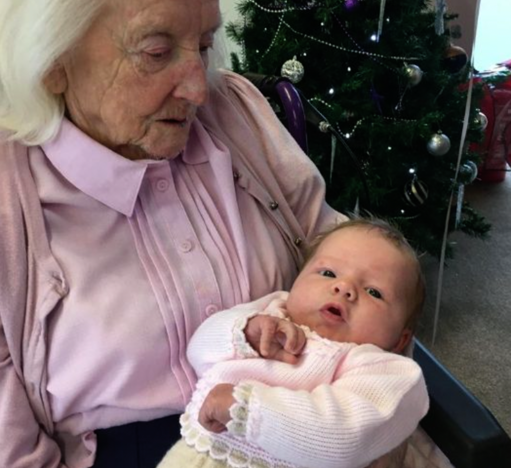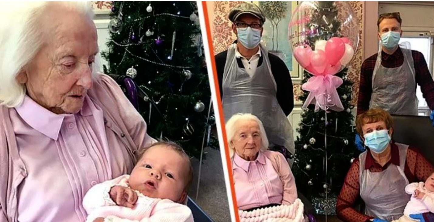 The 101-year-old grandmother was overjoyed and delighted to meet the youngest member of her family.