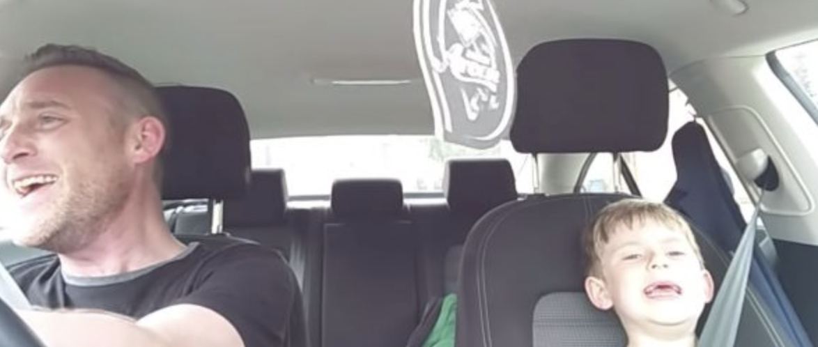It’s pretty obvious that both this father and his lovely son are used to having enjoyable time together. Once they get into the car, they turn the radio on and everything is ready for their performance. Their duetting is on point as the boy starts singing and welcomes daddy to join him.