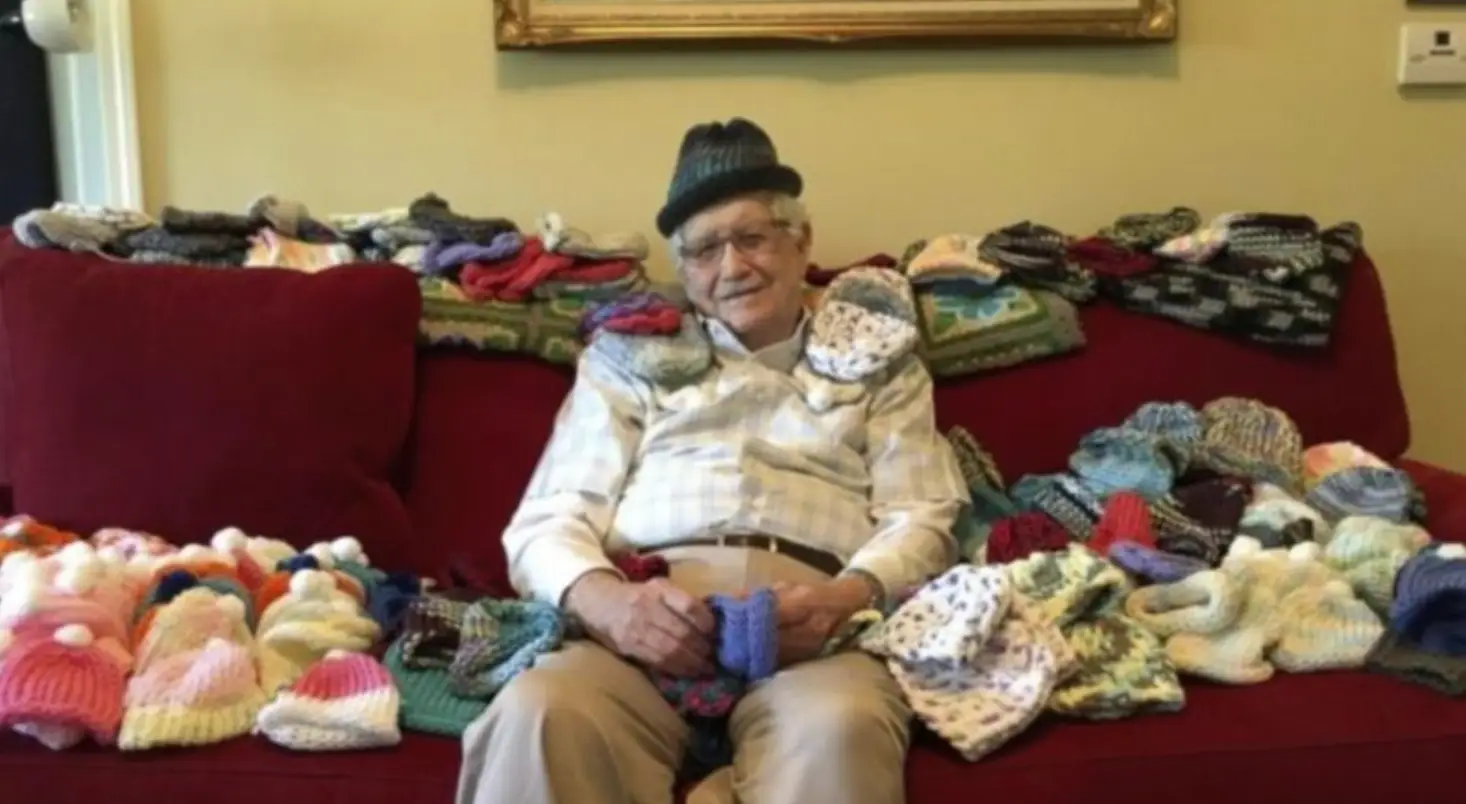 But that was not all. The man formed a group of retirees like him who knew how to knit and they, too, began to weave hats for the sweet babies.