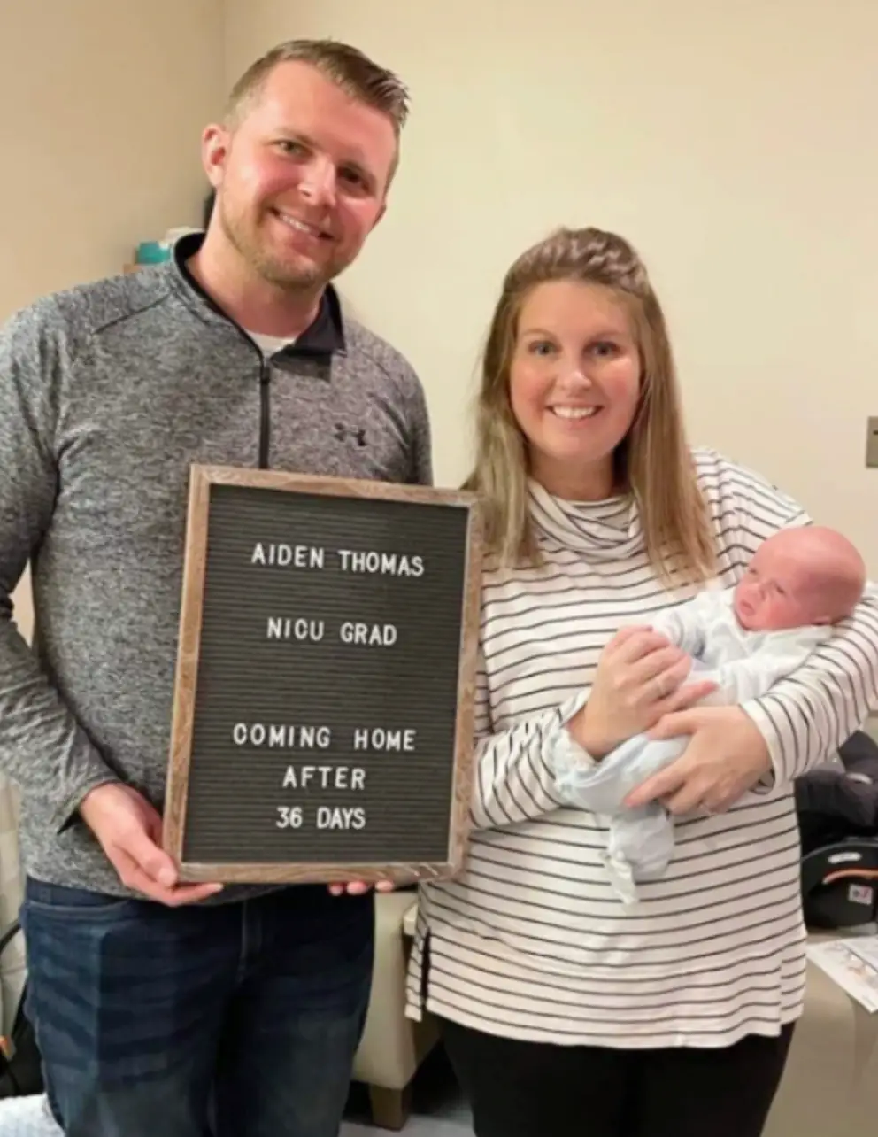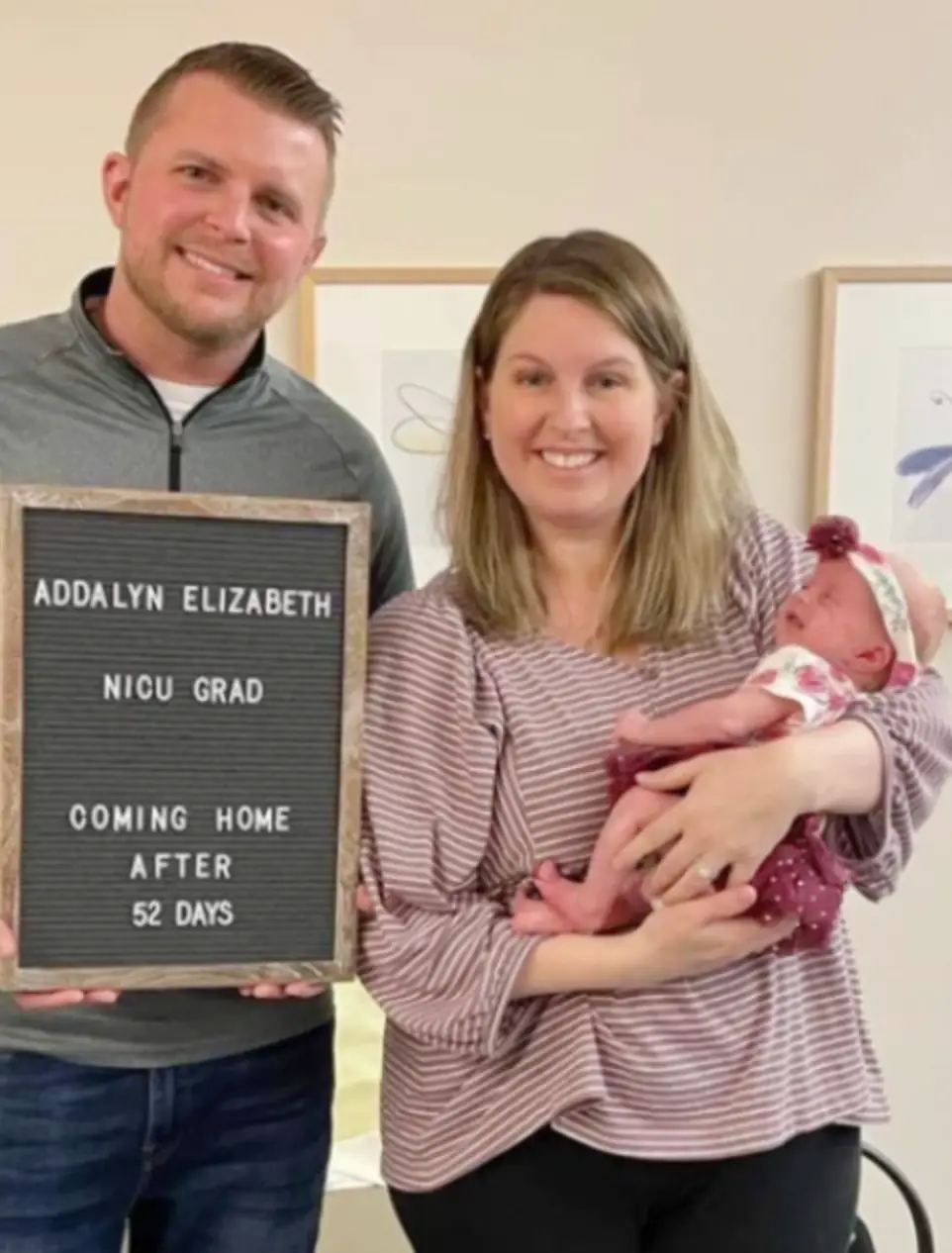 When Kellee Briggs hit 32 weeks, she was ready to deliver. Her health and the babies’ were deteriorating. The babies’ cord blood pressure was elevated so they conducted a C-sᴇᴄᴛɪᴏɴ delivery. The Briggs welcomed Aiden, 3 lbs., 15 oz., Isaac, 3 lbs., 12 oz. and Addalyn, 3 lbs. 7 oz. After Kellee went home, she developed Bell’s ᴘᴀʟsʏ, a ᴘᴀʀᴀʟʏsɪs that is common with moms and multiples. She has since recovered. While the babies stayed in the neonatal intensive care between 30 and 55 days, they’re now home.