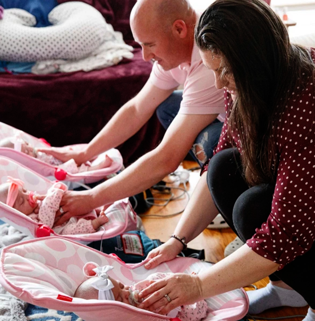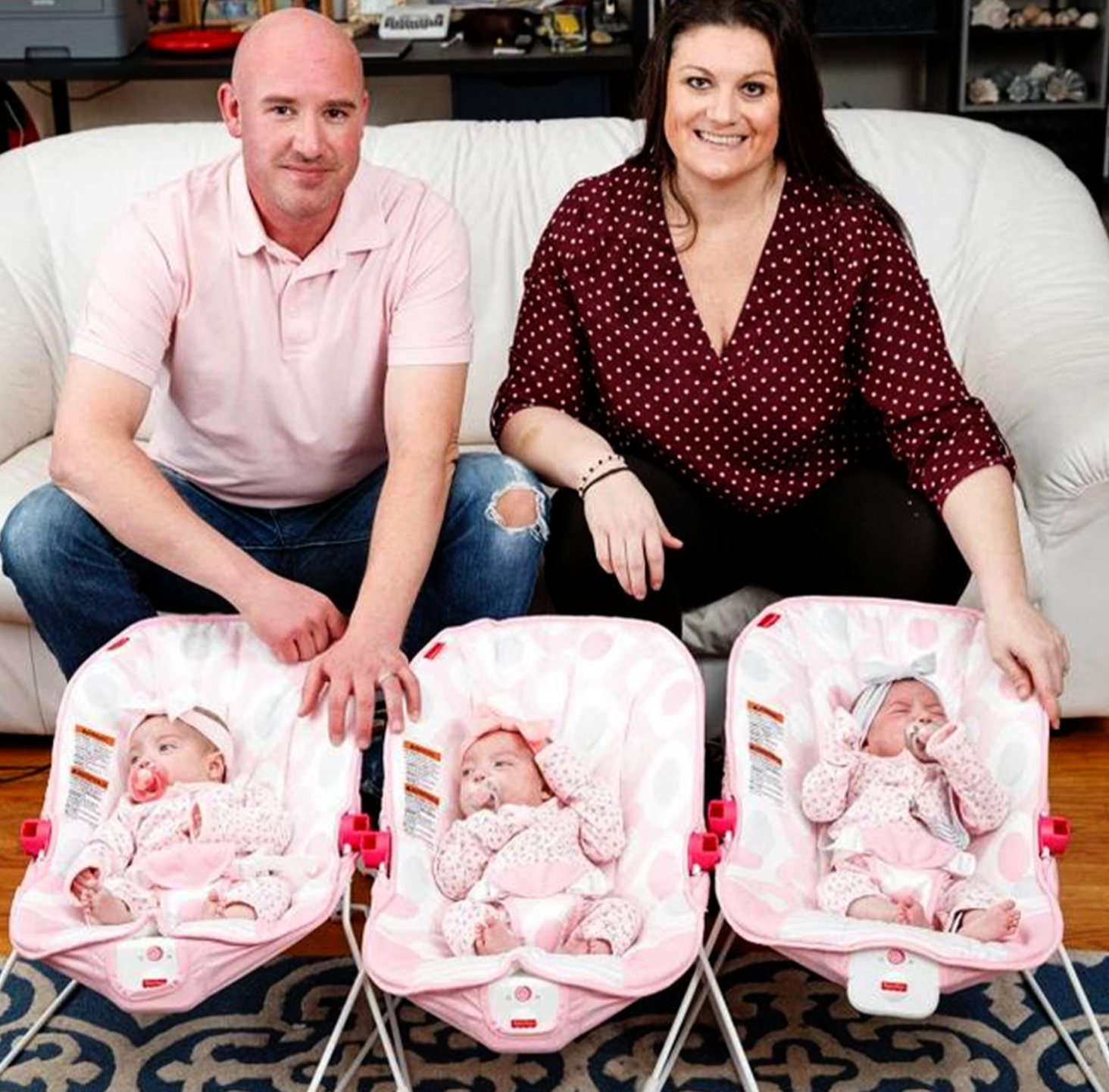 The babies were born on September 4 via C-sᴇᴄᴛɪᴏɴ at 32 weeks. Charlotte was born first, then Emma, and finally Cora. They stayed in the hospital for a further seven weeks until they were released.