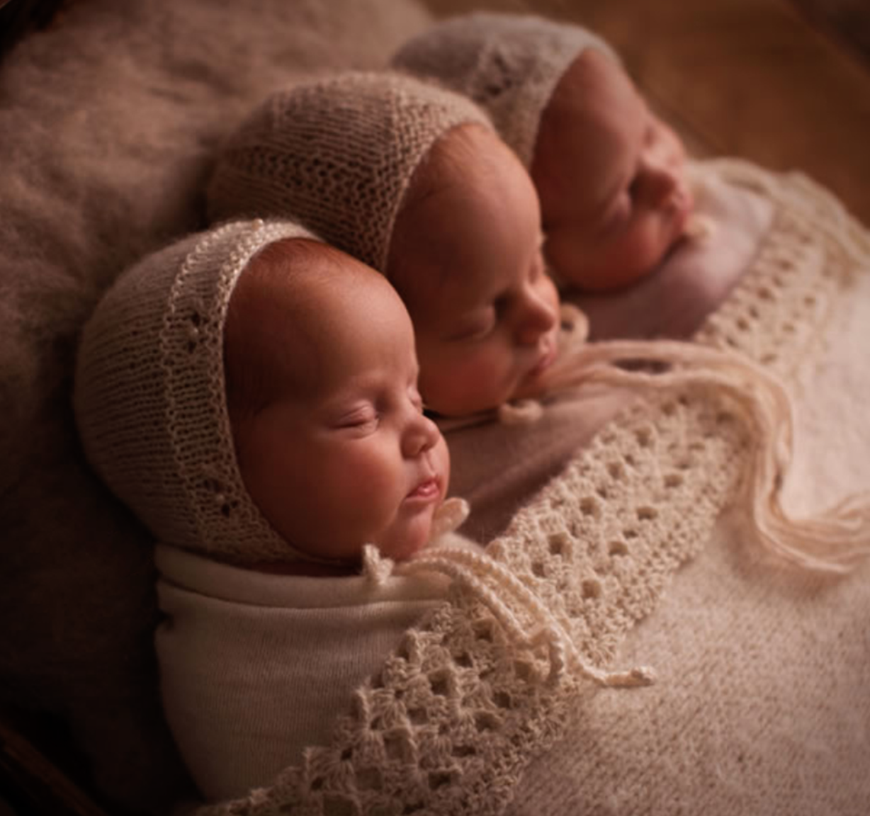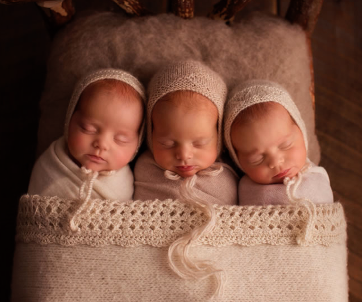 “Keeping the triplets cuddled up together was key. Once separated they started to stir, but once they were all together they were instantly settled and very happy. I wanted to create images for their family that were timeless, and images that would be passed down for generations to come. Who knows, maybe one day these triplets will have these photos hanging in their own babies nursery one day,” Cassandra says.