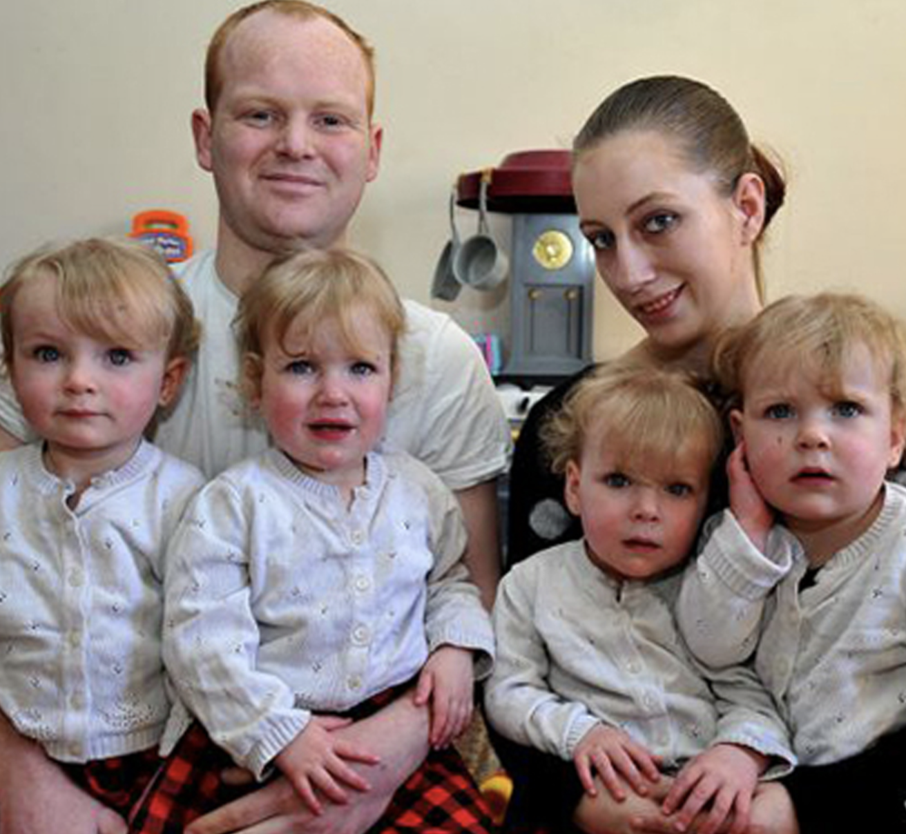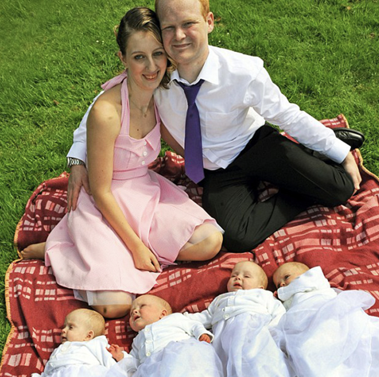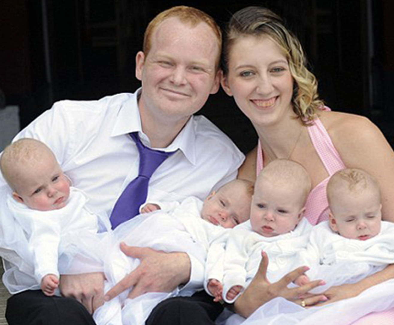 On December 11, she gave birth to four healthy baby girls: Gracie-Lou weighed 3 pounds 6 ounces, Rosaline weighed 3 pounds 4 ounces, Amalia-Rose weighed 2 pounds 9 ounces, and Eveylynn weighed 2 pounds 6 ounces. Doctors first thought she had two identical twins, but DNA evidence revealed that all four girls were identical after the children’ father, Mark, failed to tell them apart. Mark explains: “I realized they all looked extremely similar and it was difficult for me to tell them differently. As a result, we decided to do a DNA test. The girls were all identical, according to the findings we received last week.”