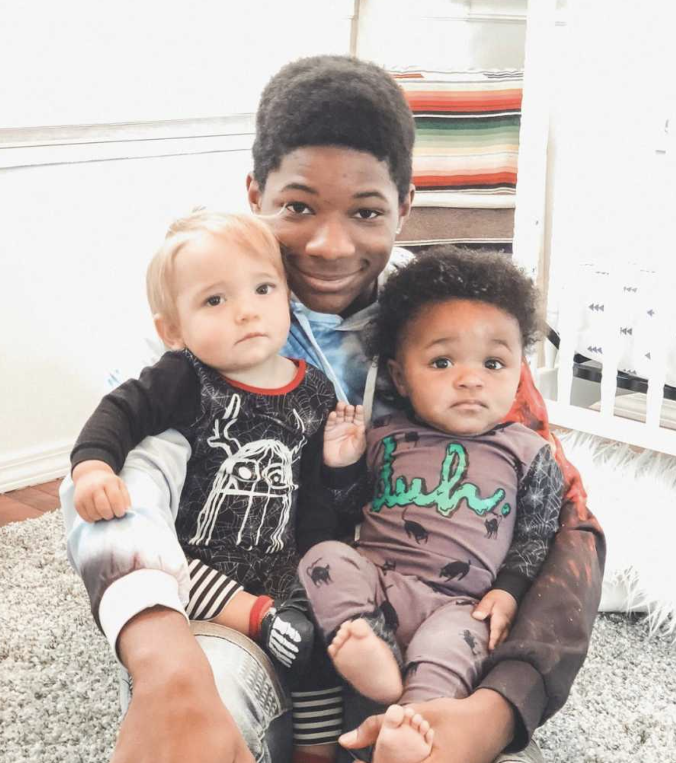 “Never did we imagine one year ago that we would be adding 3 more children in under 9 months (especially all boys) to the 2 that we already had. I have not given birth to any of the 5 boys we have at home right now. But I am their mom. We have since finalized both Andy and Ellis’ adoptions. They are officially Orams. We share custody with our oldest two boys and their mom. And we don’t have a timeline as to how long Sean will end up staying. Family does not have to be made from blood. It can come in many shapes and sizes. Love is all that matters. So here we are. A current family of 7. We love each other deeply. And go on a lot of adventures together. It is not always easy. There have been many ups and downs and everything in between. But we wouldn’t trade it for the world.”