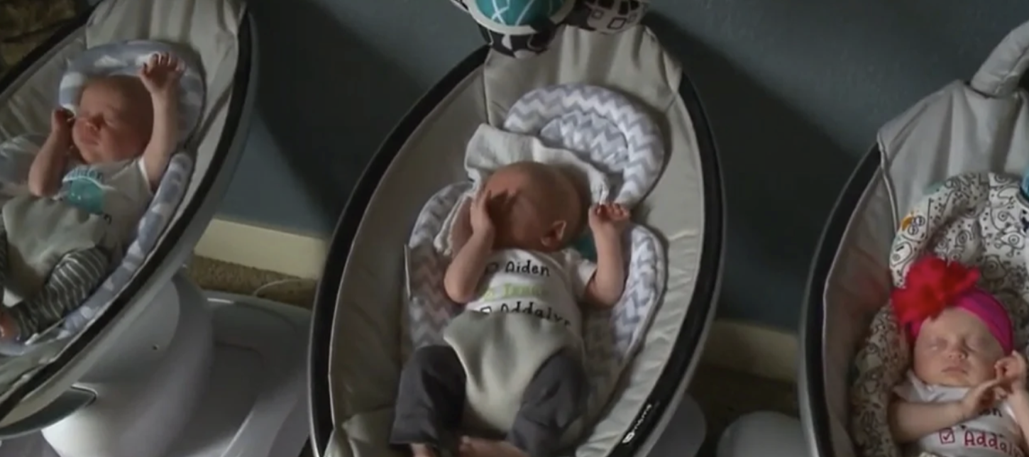 She hoped to stay pregnant as long as she could to increase their chances of survival, and she made it! She wound up having a C-section at 32 weeks gestation and welcomed two boys and a girl to their family. Aiden, Addalyn, and Isaac all spent some time in the NICU before coming home in the exact order of their birth.