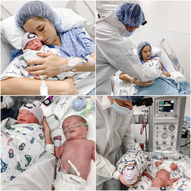 (For some reason when you’re pregnant with multiples, everyone likes to share all of the scary stories of their cousins cousin that had babies early, etc and I let fear of that creep in.) By the time we were at a safer place with the babies, the fear of delivery came. My OB was awesome and so patient with me. He knew I was nervous so he scheduled the delivery on his vacation time off because he knew that him being there comforted me.