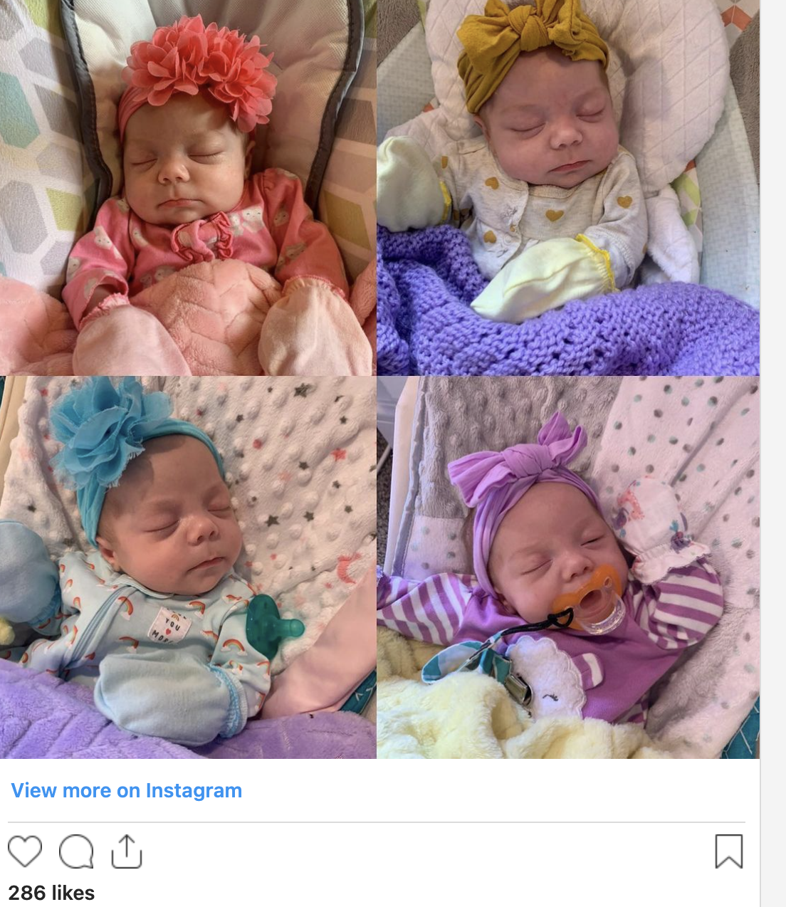 Sawyer was the biggest among them four, she weighed 3 pounds and 3 ounces. While Lakely was the smallest at 2 pounds and 3 ounces.