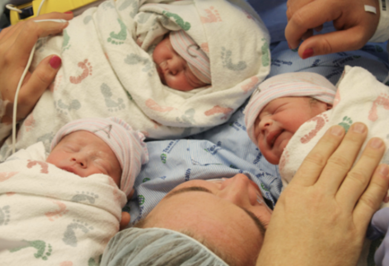 Despite being told by doctors that they would need to terminate one of her triplets, she gave birth to all three triplets on June 9, 2015. Beau, Wyatt and Savannah (3), were born only a minute apart.