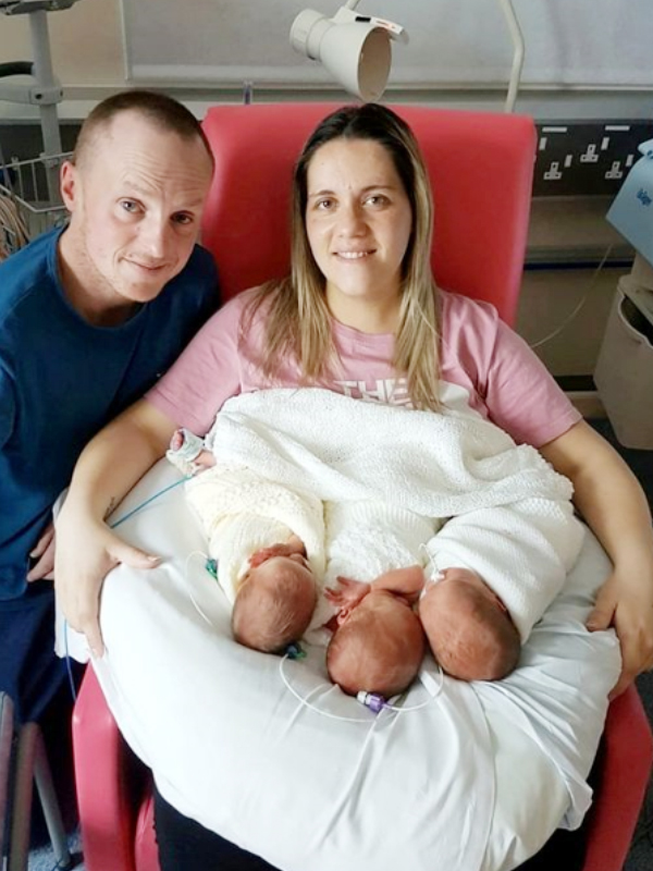 Amazingly, the couple, from Carlisle, Cumbria, discovered they had been blessed with not one but three tiny “miracles” – and now have everything they ever wanted. They welcomed their children – Lola, Jacob and Tommy – into the world eight weeks early by ᴇᴍᴇʀɢᴇɴᴄʏ ᴄᴀᴇsᴀʀᴇᴀɴ sᴇᴄᴛɪᴏɴ at Newcastle’s Royal Victoria Infirmary on April 7. Lola Frances was first born, weighing just 3lbs, followed by her identical twin brothers Jacob Douglas and Tommy James, who weighed 3lb 8oz and 3lb 10oz respectively. But photos taken on Thursday (May 2) last week show the triplets at home for the first time after being ᴅɪsᴄʜᴀʀɢᴇᴅ from hospital. Niketa, who works as a healthcare assistant at Cumberland Infirmary, said: “It didn’t sink in until I actually saw them in the incubator and I thought ‘they are mine. We are finally a mam and dad’. Me and my husband have been totally blessed.”
