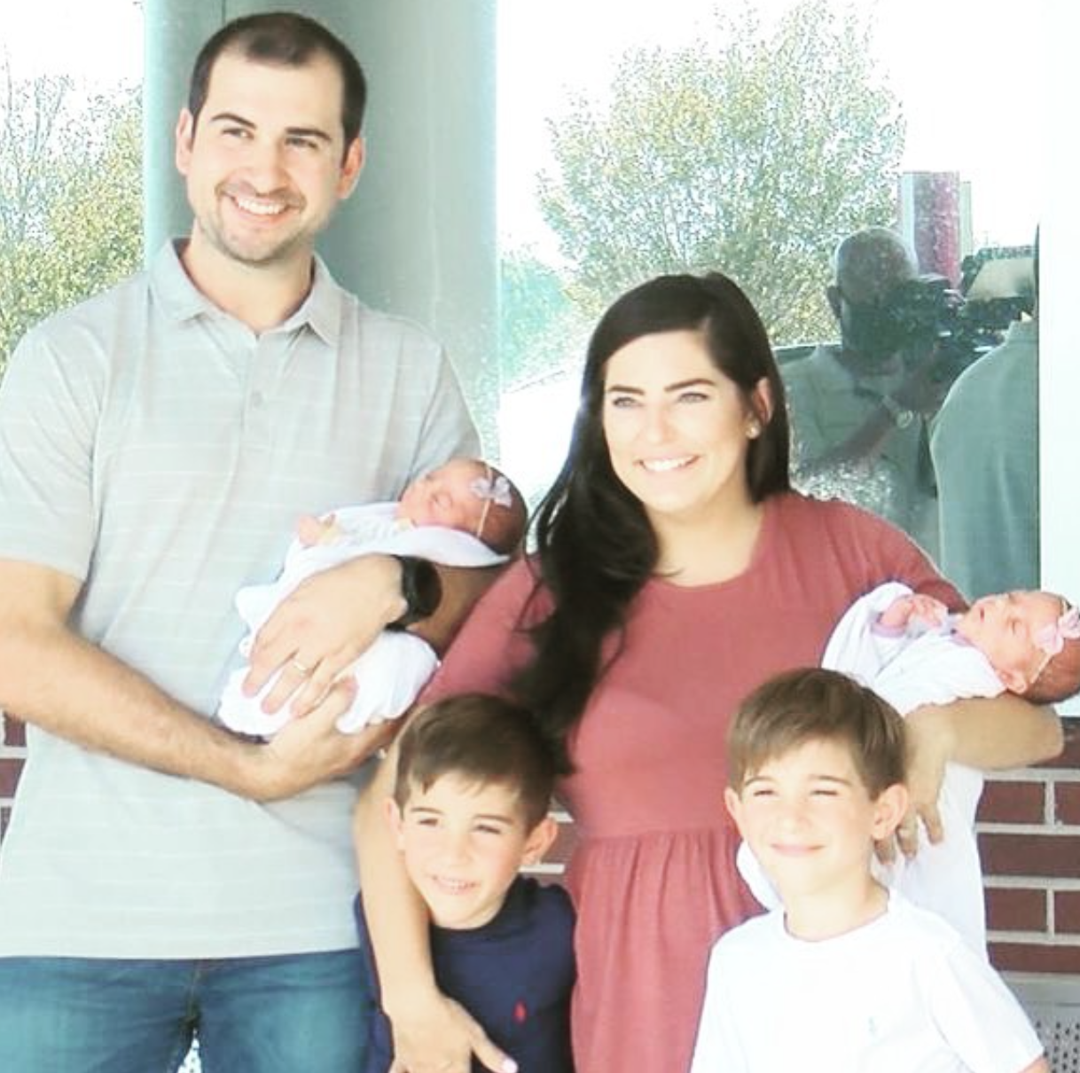 Erin and Jake welcomed their baby girls to the world last year, on September 22, 2020. The identical twin girls are named Lola and Allie. Born at 32 weeks, the sisters had to spend a few days in the NICU, but were eventually able to go home and meet their big brothers.