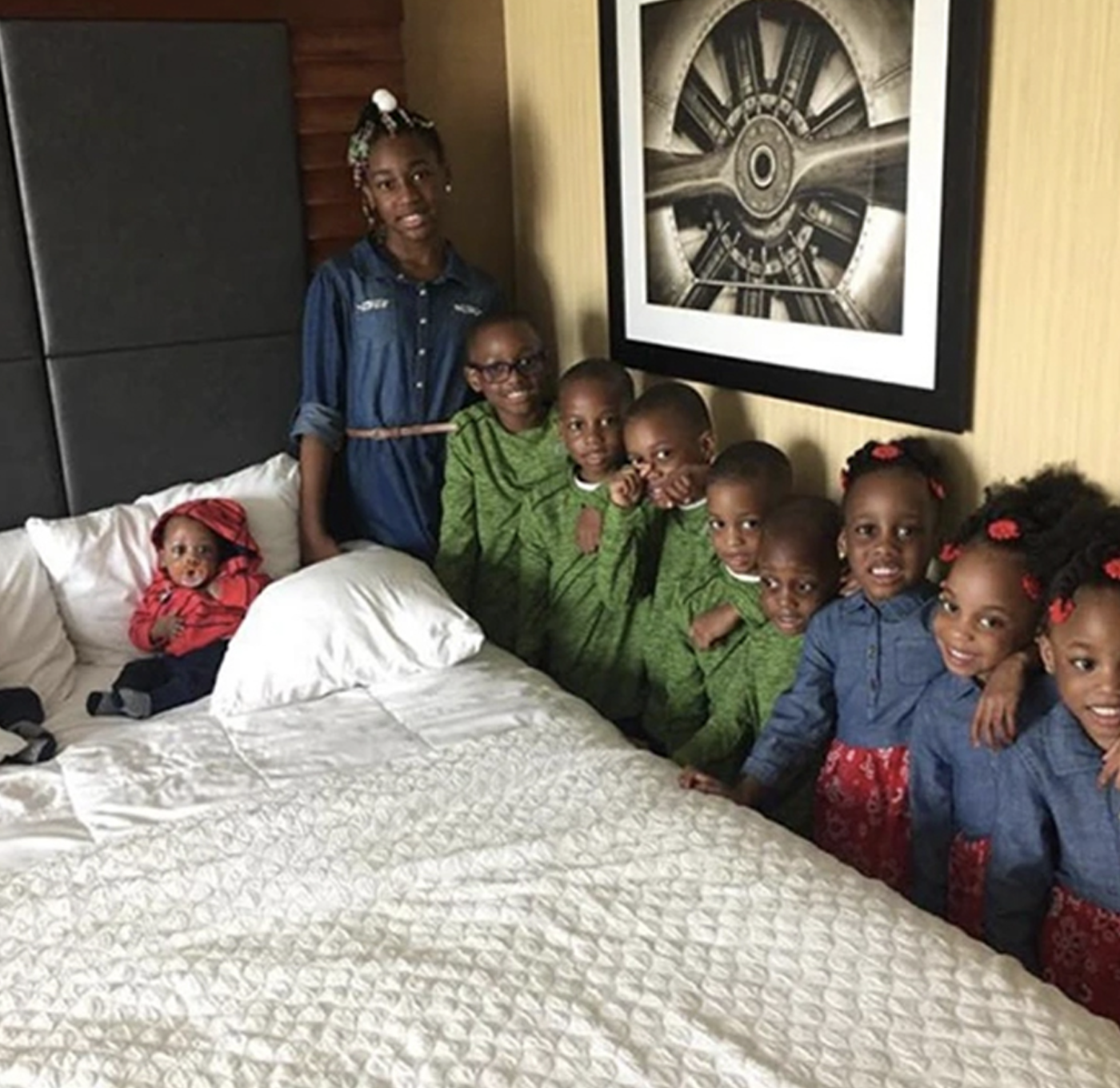 Each was delivered between 11.17am and 11.21am on Friday, September 6. In keeping with family tradition, the babies’ names all start with the letter ‘D’: Deniko, Dariz, Deonee, Daician and Daiten. They joined the Derricos’ seven-year-old daughter, Dai, a three-year-old son, Deon, and one-year-old twin Bᴏʏs, Dallas and Denver. The mother didn’t know the babies’ genders prior to birth, hospital officials said, and she announced ‘boy’ or ‘girl’ as each baby was presented to her in the delivery room. Even though they already had twins and have other multiple births in their families, the couple was Sᴛᴜɴned. Doctors said the chances of her carrying quintuplets was one in a couple of million.