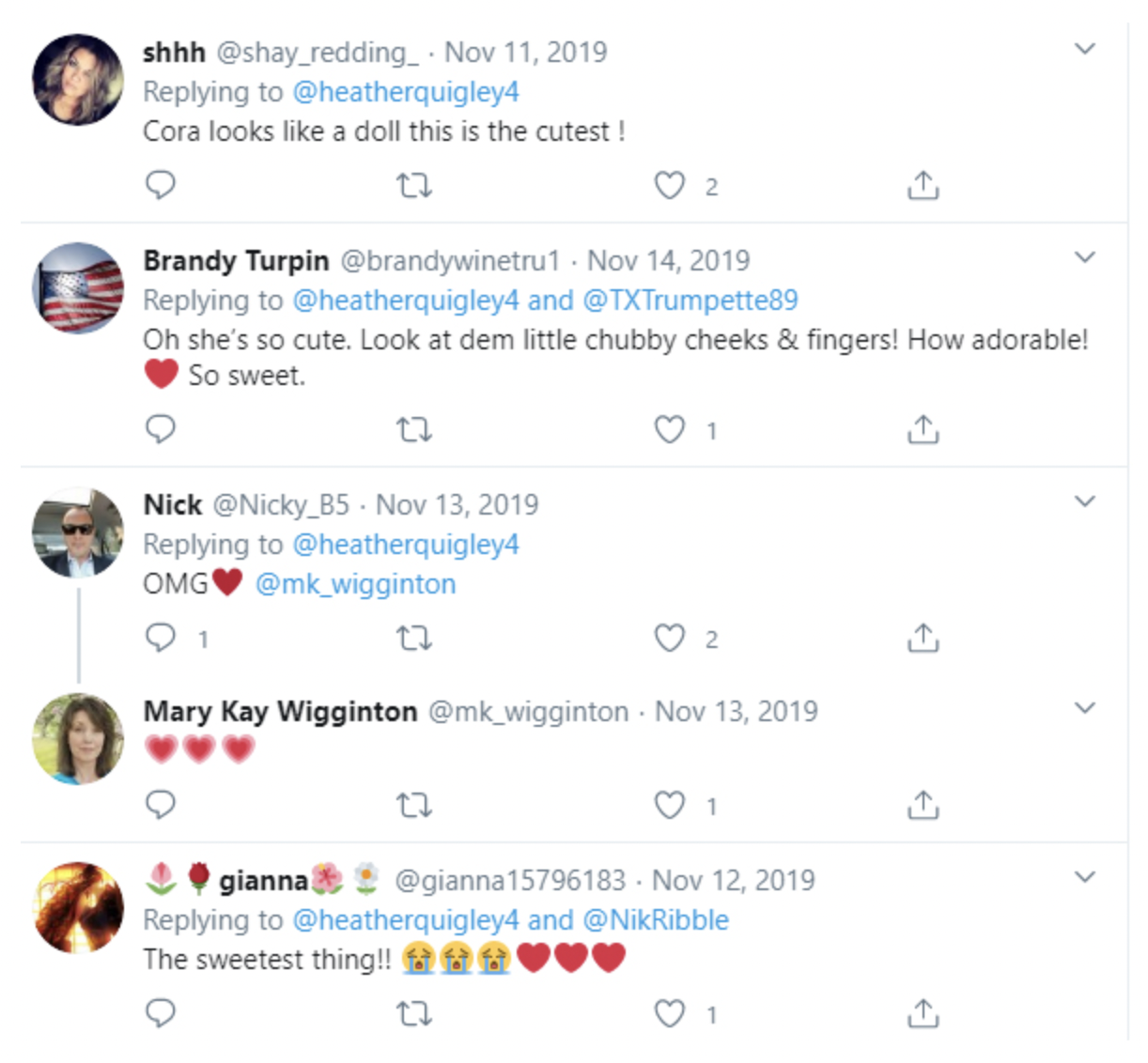 Molly looked at Cora and said, in between kissing the baby, “You just came out of mommy’s belly. I won’t drop you… I won’t let you go anymore.”