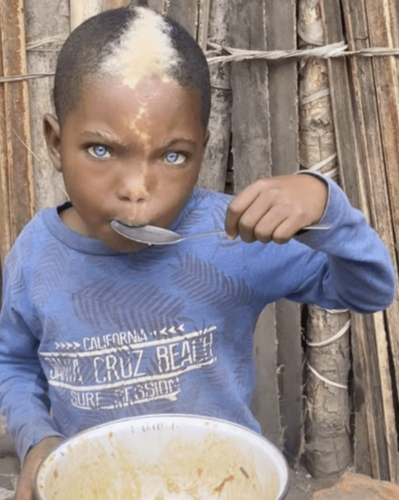 While there are no details known about the child as to his age or name, people are enchanted by his beauty. The little black boy has natural blue eyes that are vivid and piercing to anyone he looks at.